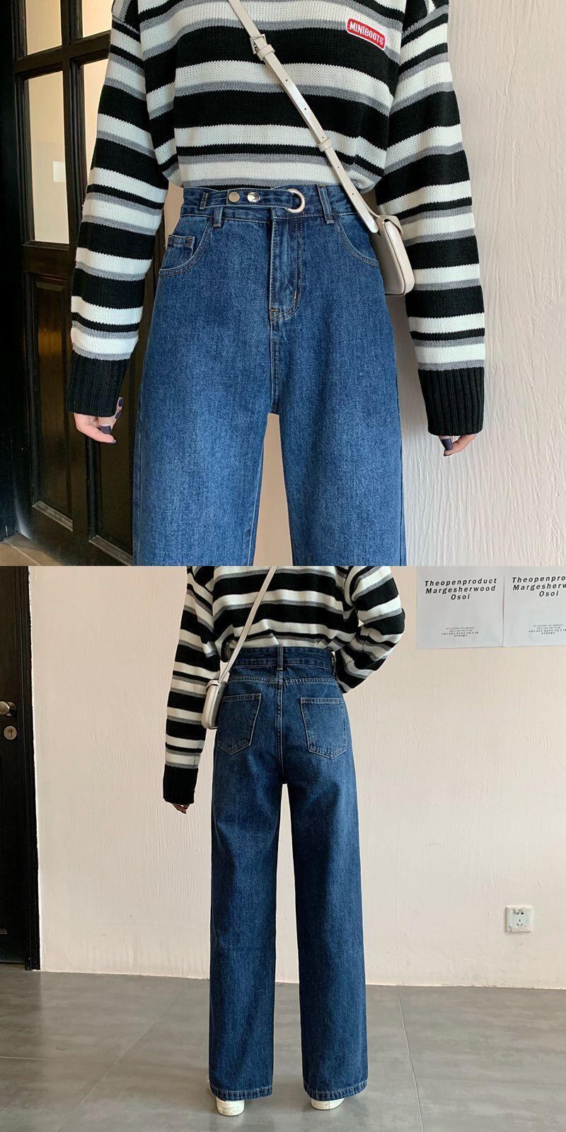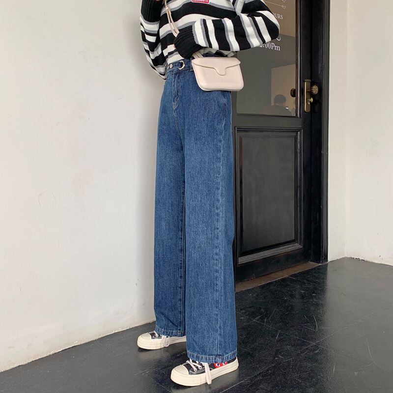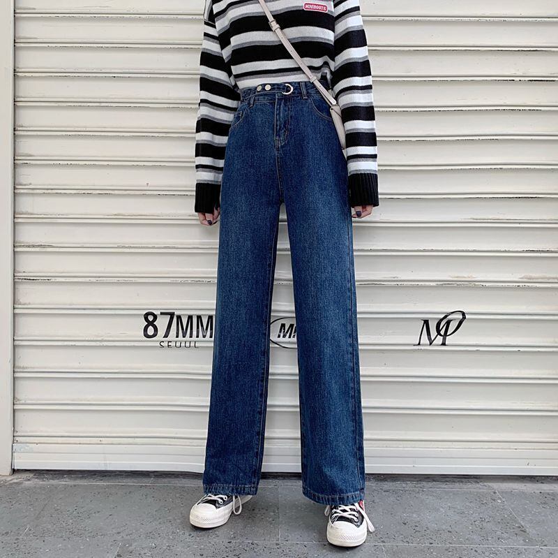 -ウエストジーンズレディース2020年初春新作ストレートレッグシンルーズドレープワイルドワイドレッグモップロングパンツ 1号婦人7103321392