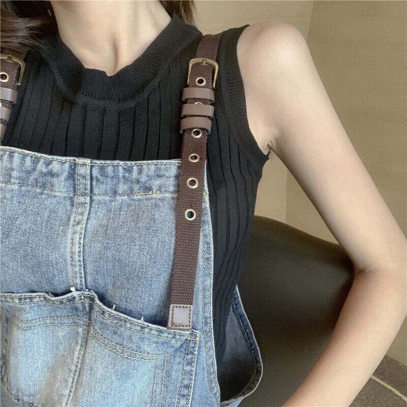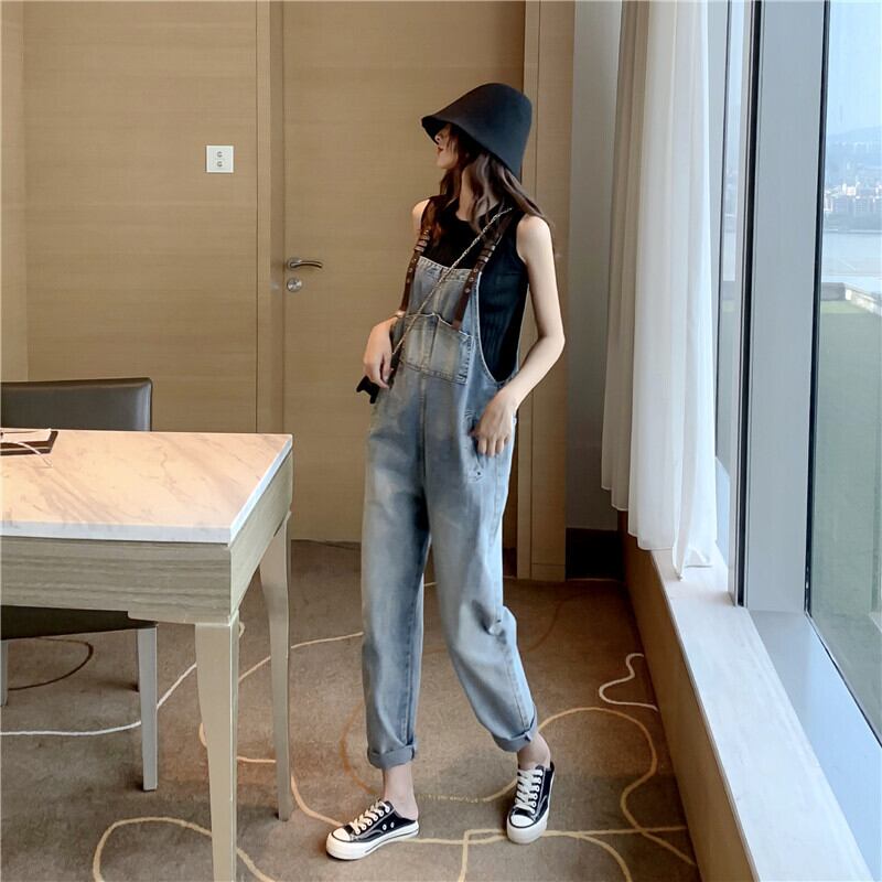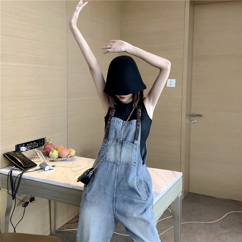 ネットレッドデニムビブパンツレディース2020新春秋バージョンルーズ&シンワイルドスリングワイドレッグパンツ 1号婦人87238343329