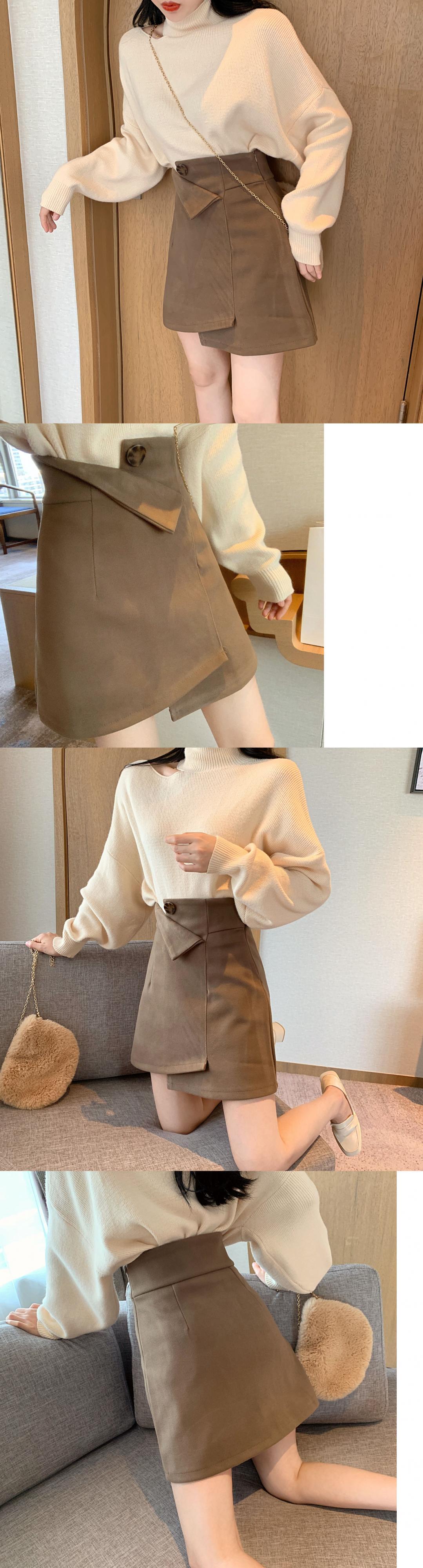2019年秋冬新作レトロ香港フレーバーイレギュラースカート女性気質ブラックハイウエストAラインバッグヒップショートスカート 1号婦人75111646447