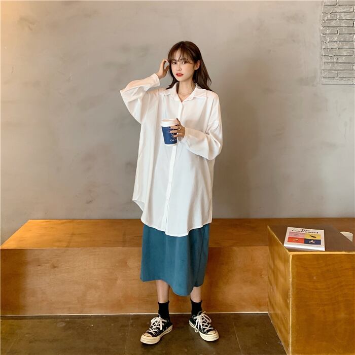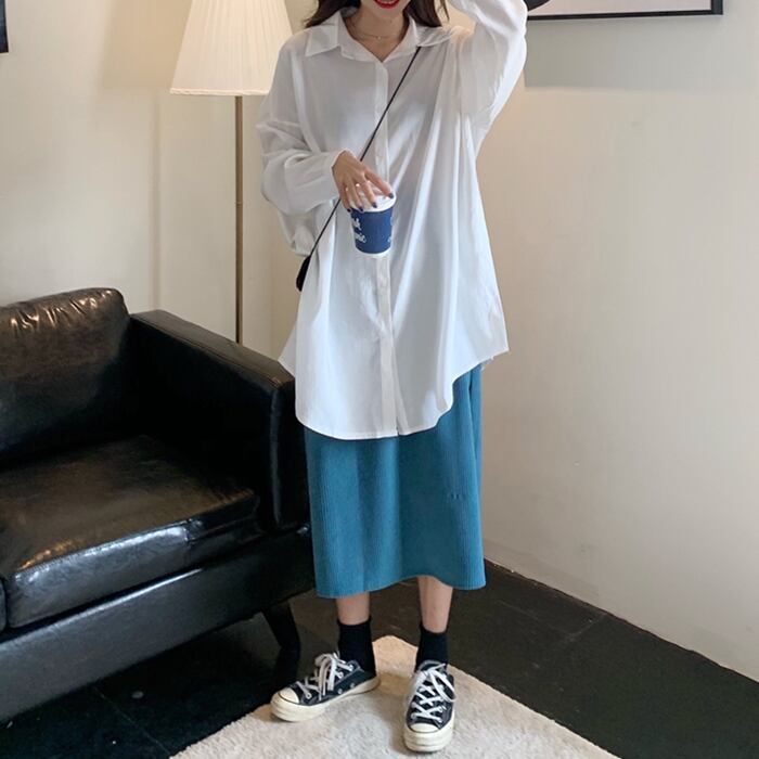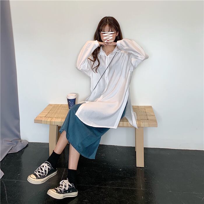 スーツ女性2020年初春新デザインセンスニッチスプリットホワイトシャツ+ミドル丈ハーフレングススカートツーピーススーツ 1号婦人91547369576