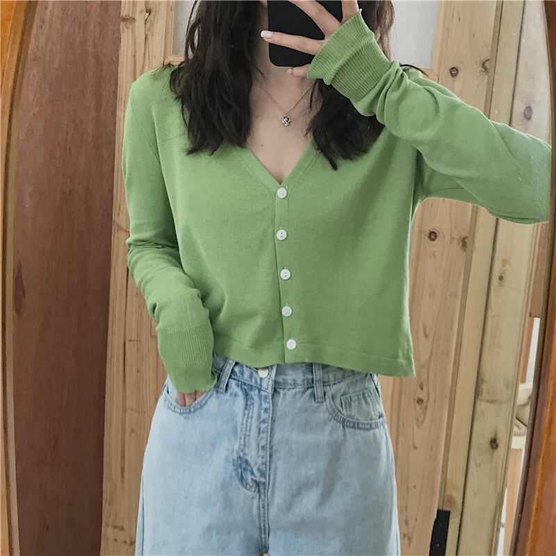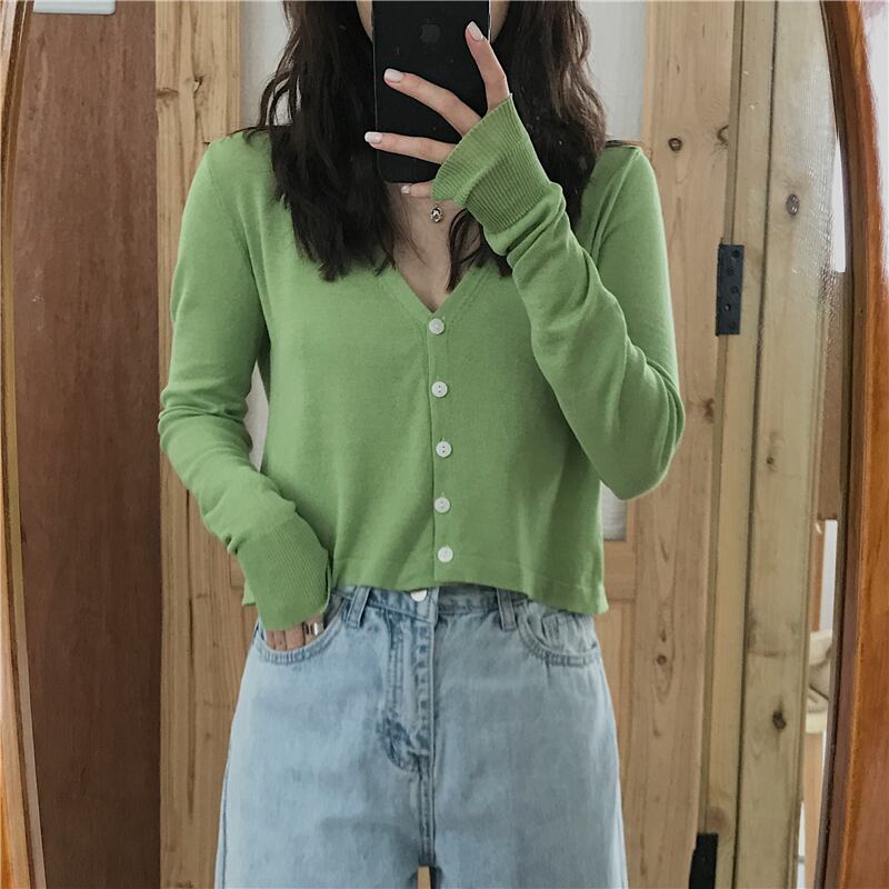 2020ニットウェア早春ブラックショートVネックトップレディース長袖カーディガン薄手のセータージャケット 1号婦人39981944371