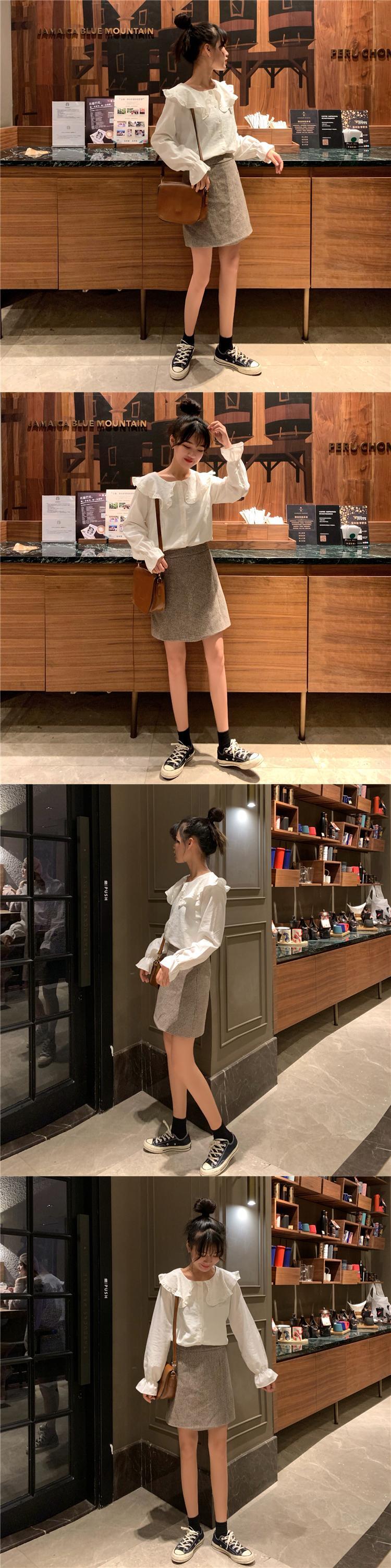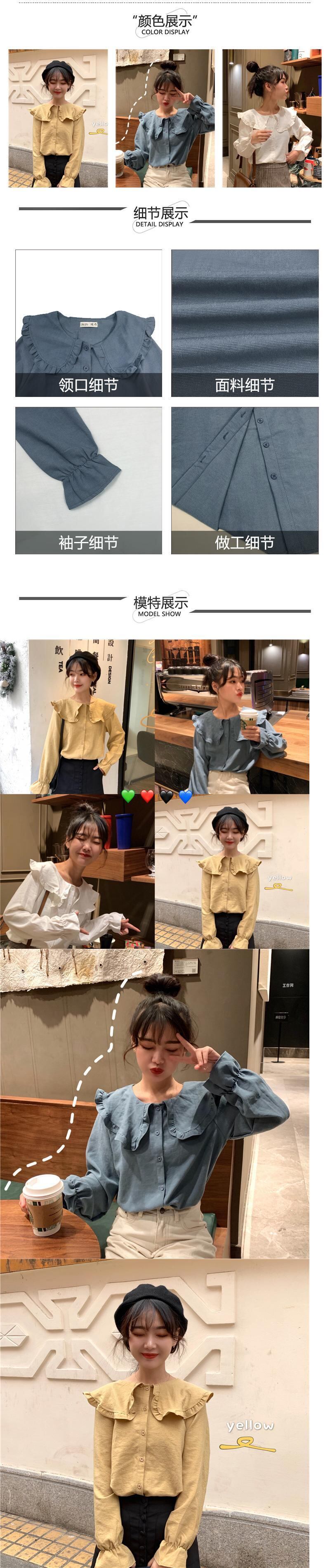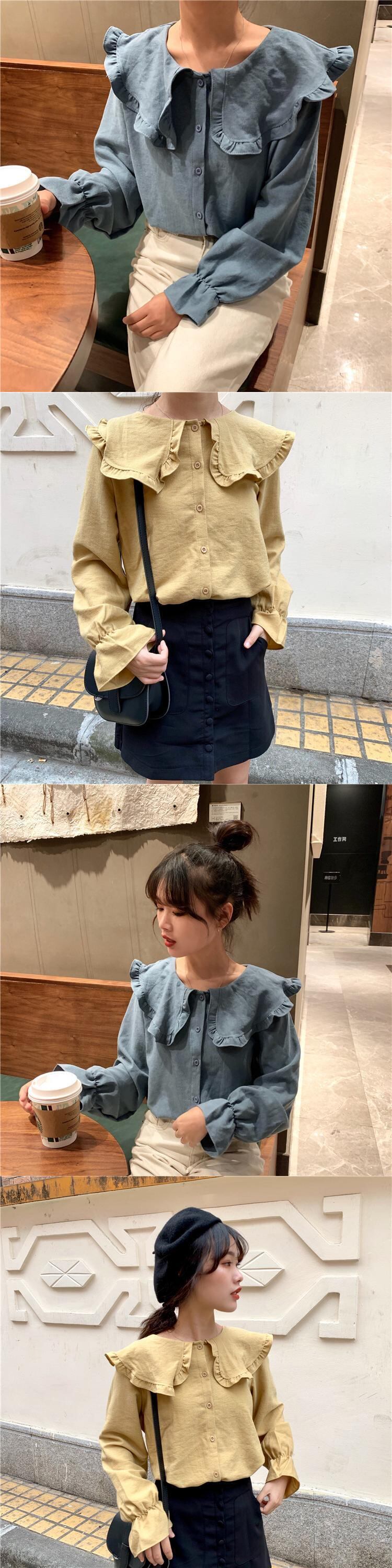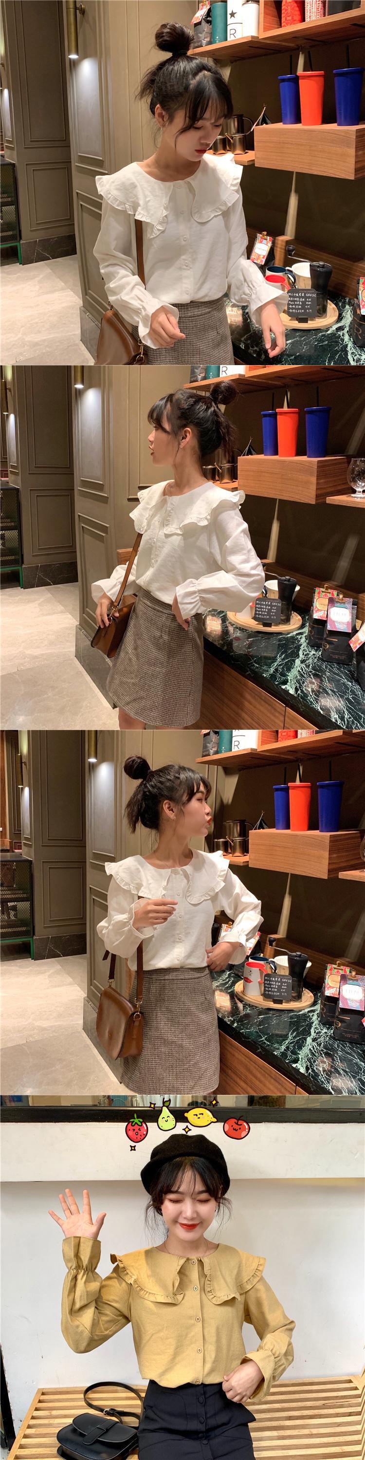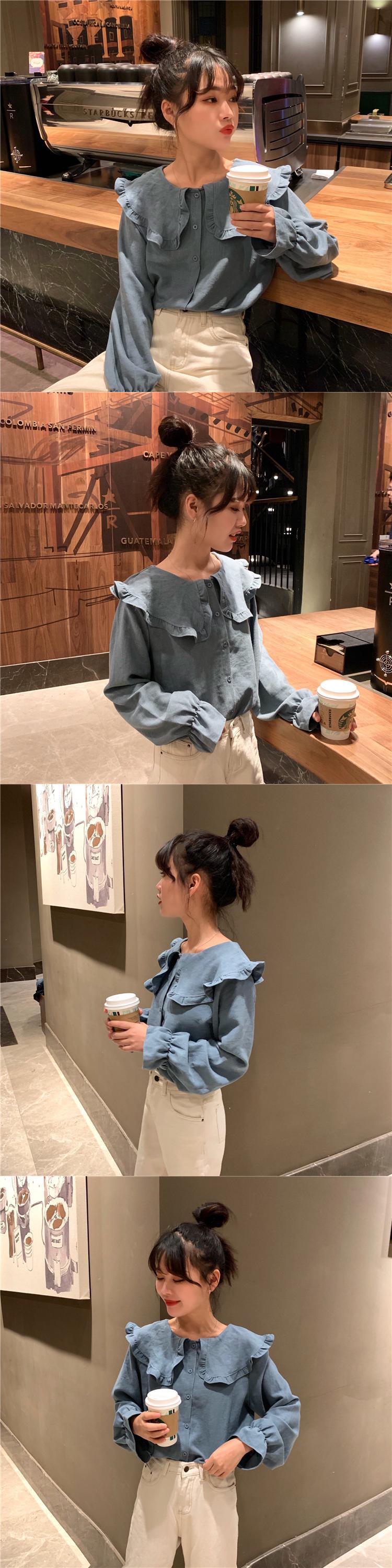 長袖シャツ女性デザインセンスニッチドールカラーフリルシャツルーズパフスリーブスケミングトップスプリング 1号婦人80287764153