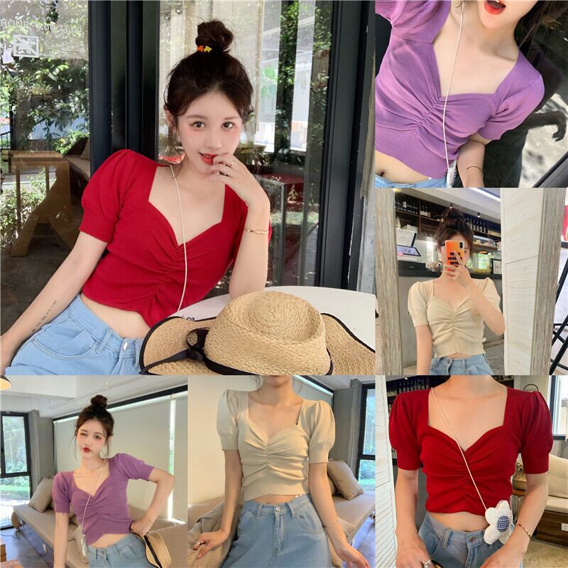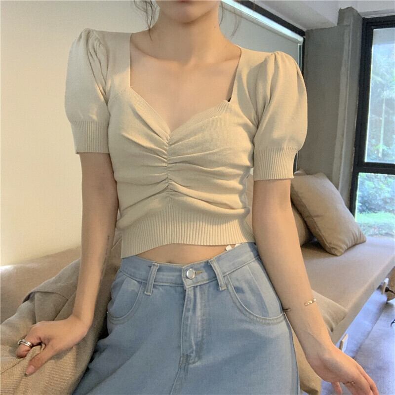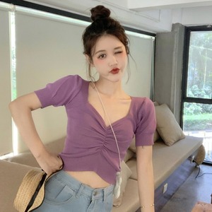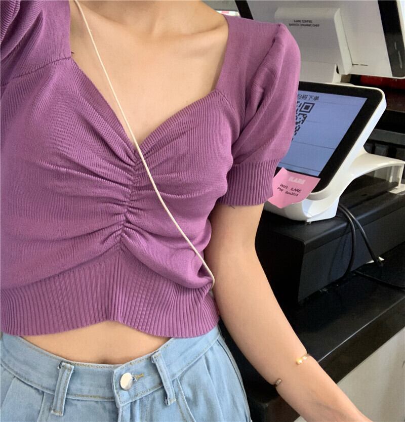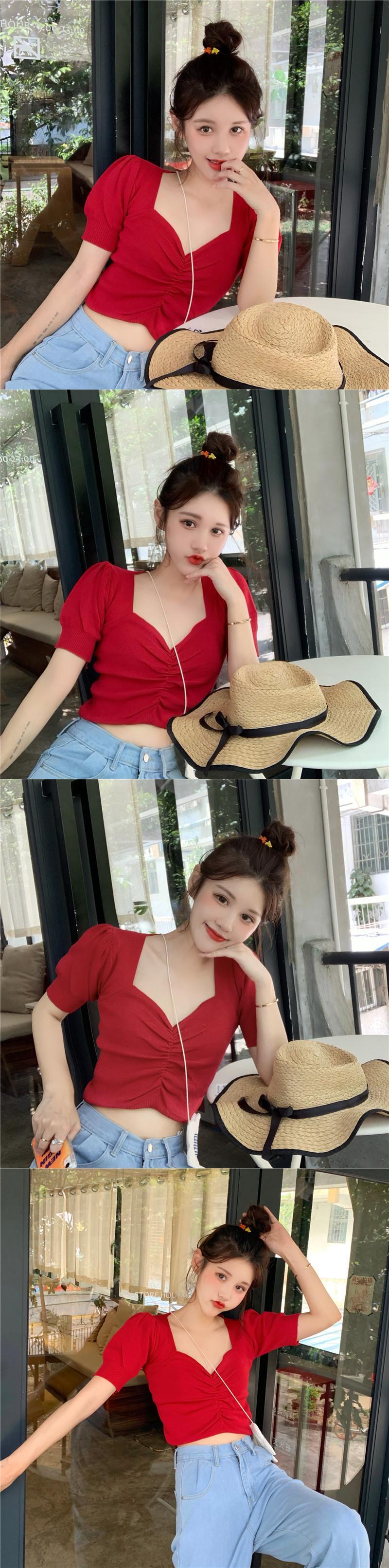 半袖セーターレディース2020年夏新しい小さなパフスリーブ半袖トップスネットレッドeignエアシャツ 1号婦人60790817475