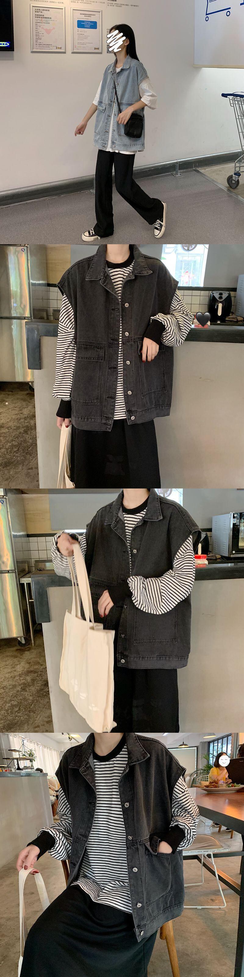 人気のショートコート秋の服2020新しい女性の春と秋のルーズデニムベスト学生ノースリーブトップス 1号婦人49224992327
