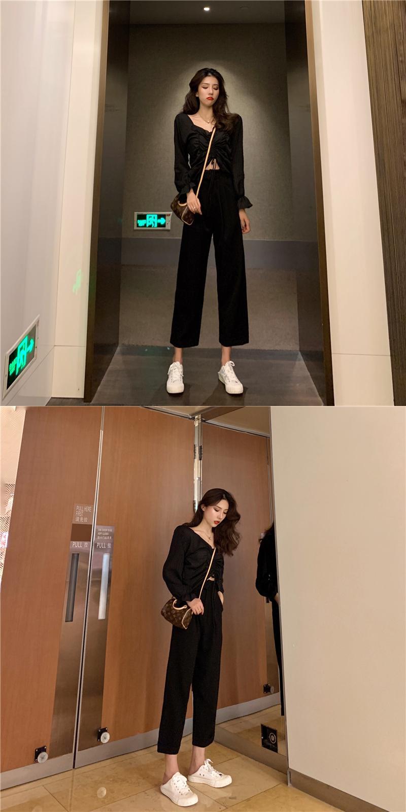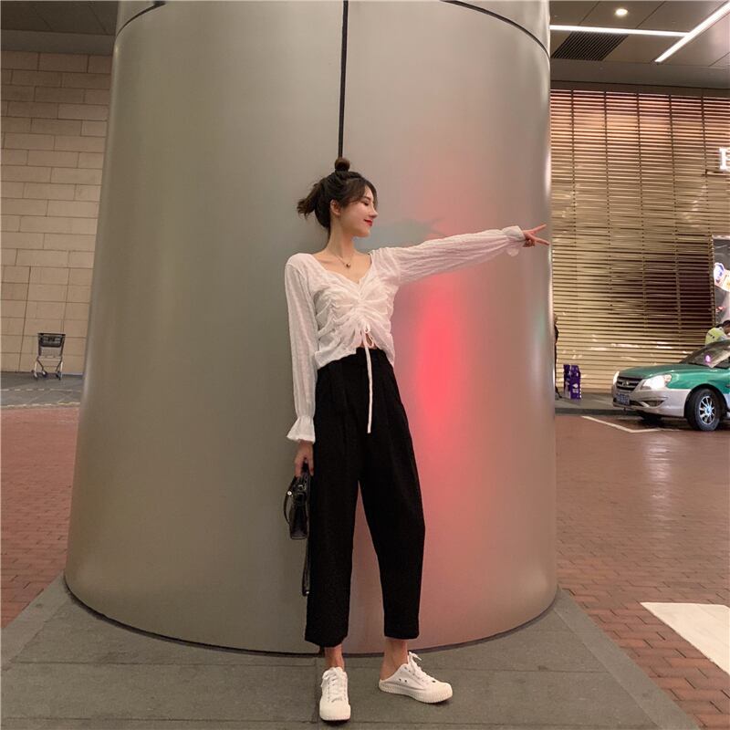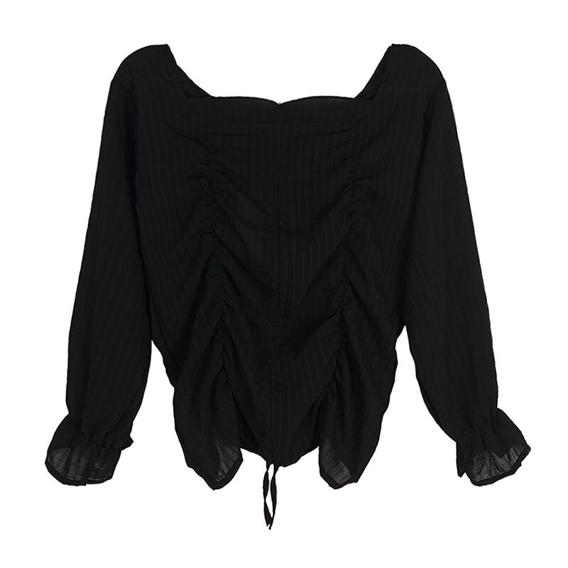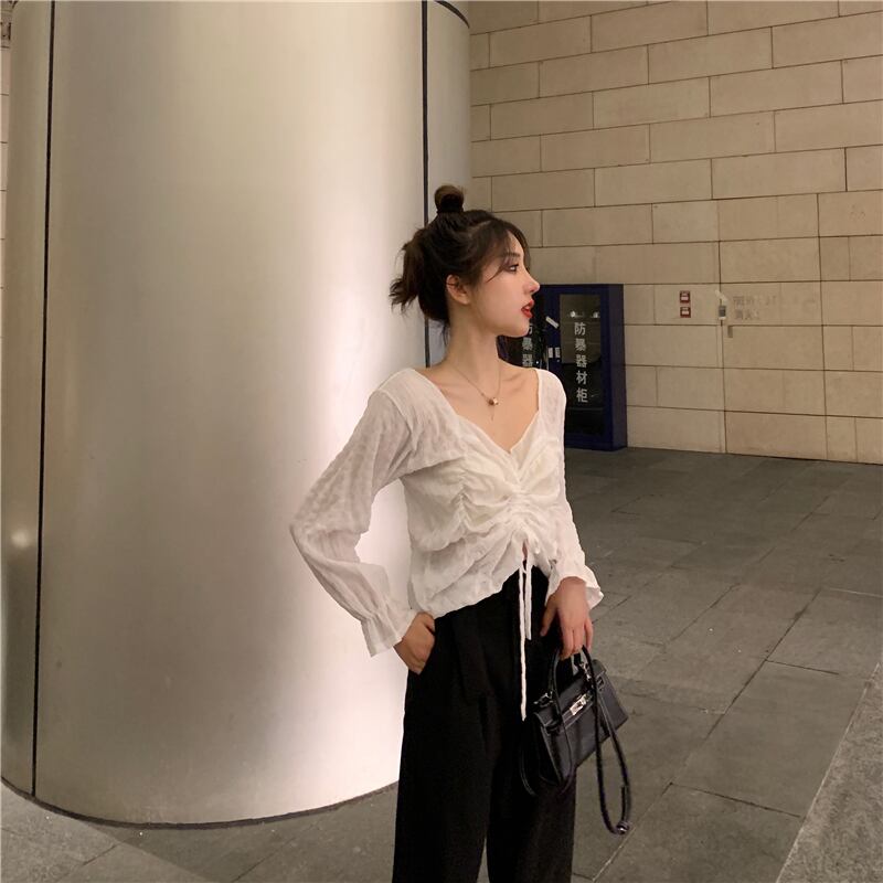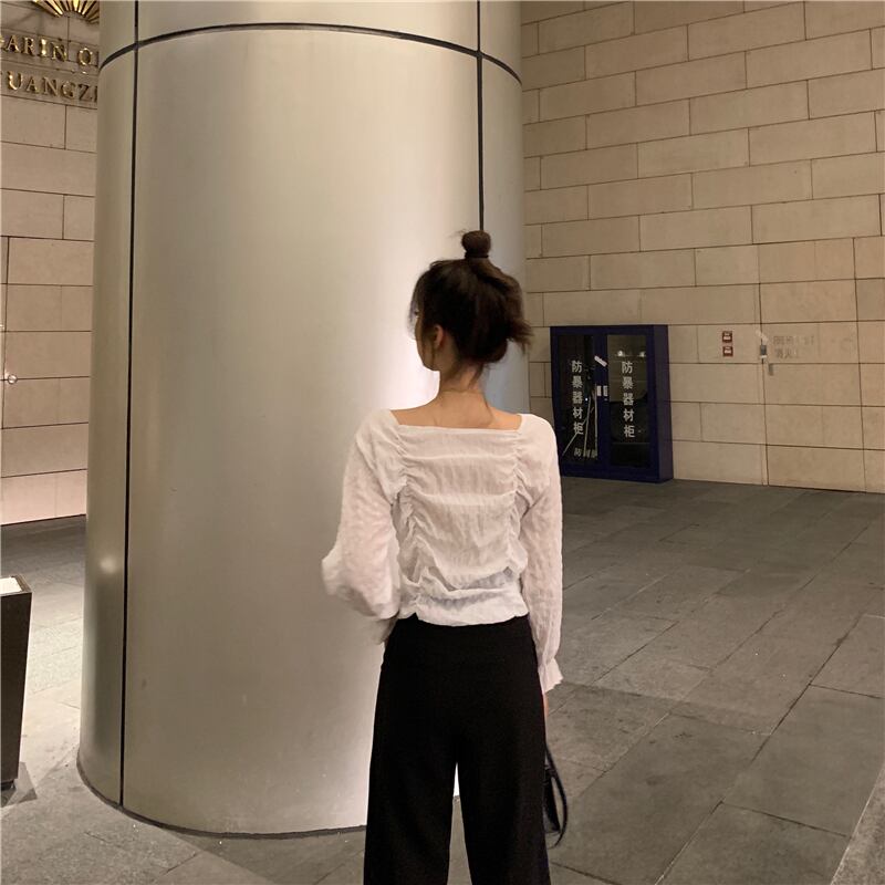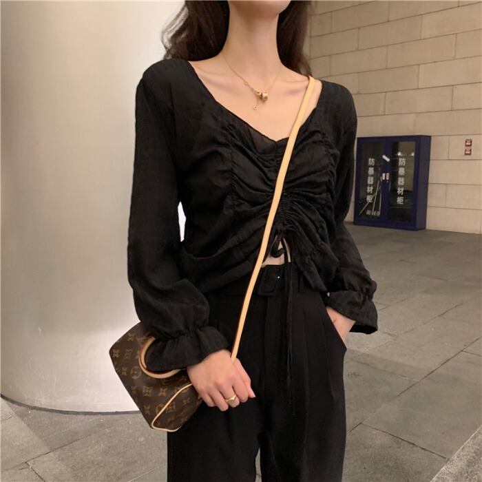 トップ2020ニューニッチデザインセンスフェアリーウィメンズショートシフォン鎖骨丁寧マシンヒョナスタイル巾着シャツ 1号婦人85382864665