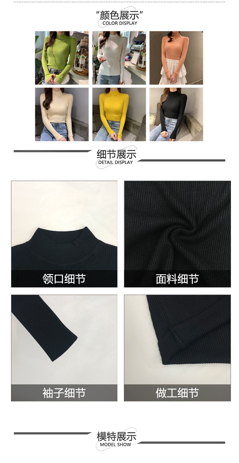 2020年秋新しい女性のスリムライト成熟したトップ気質ヘッジハーフタートルネックセーター長袖ニットボトミングシャツ 1号婦人6079037937