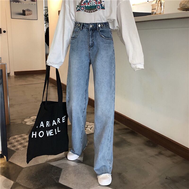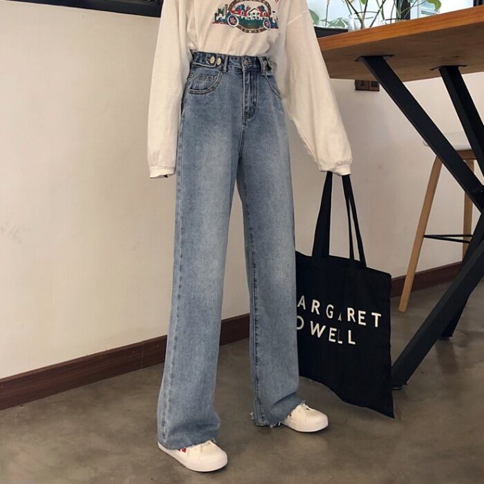 レディースパンツ2020新春秋ハイウエストワイドレッグパンツルーズストレートレッグジーンズは薄くてモップパンツ 1号婦人46310151641