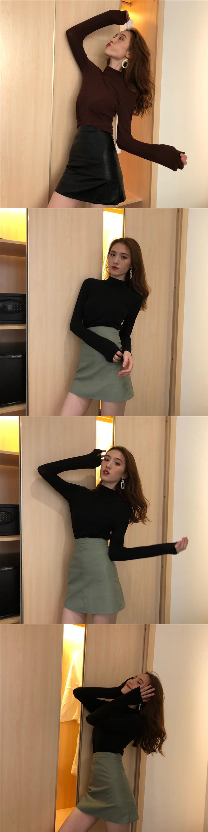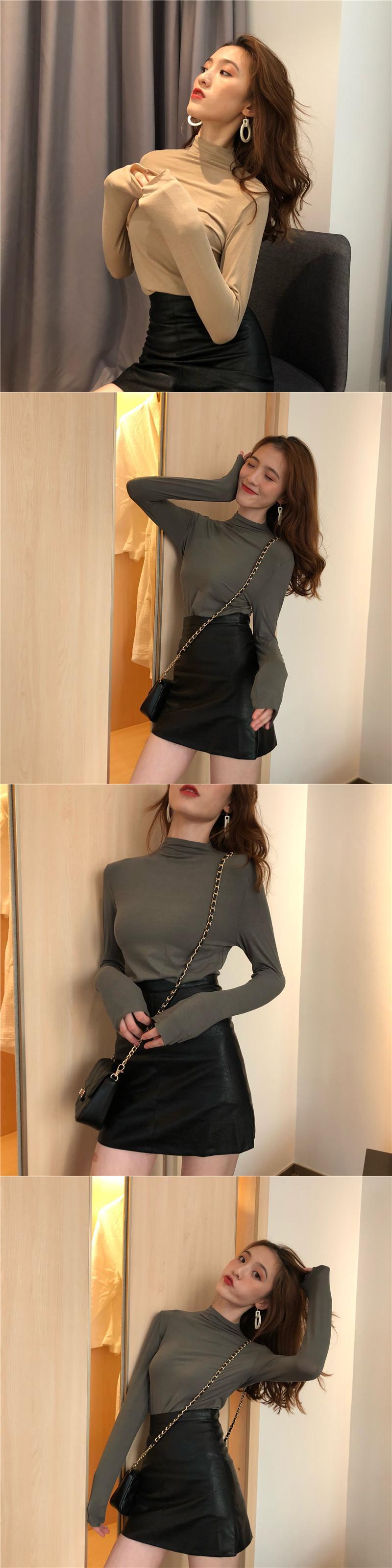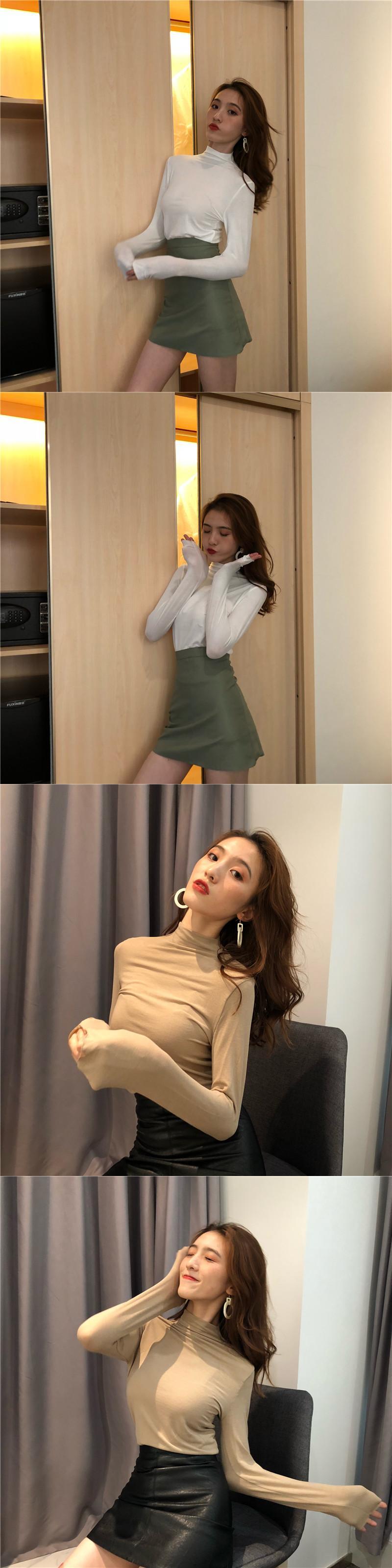 2020年秋新作ホワイトインナージャケットオールマッチブラック長袖ボトミングシャツハーフハイネックネットレッドTシャツレディース 1号婦人16128812848