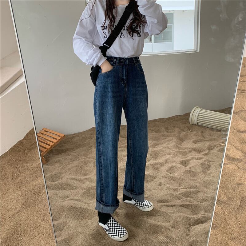 ジーンズレディース2020年春秋新作ルーズ、シン、ハイウエスト、ストレート、ドレープ、ワイドレッグ、モップロングパンツ 1号婦人33284129970