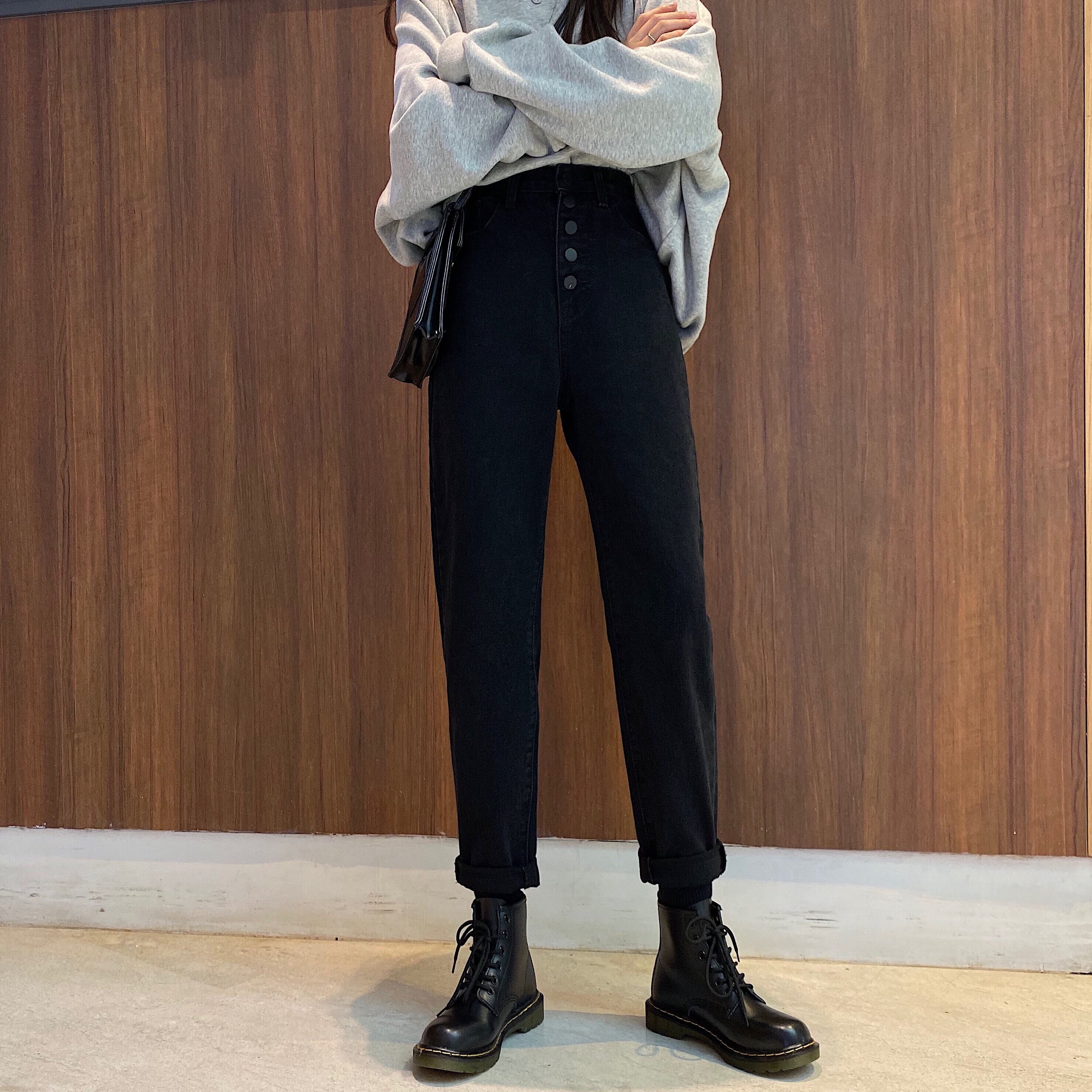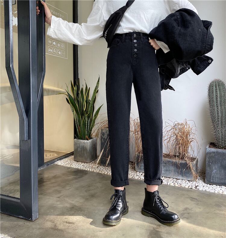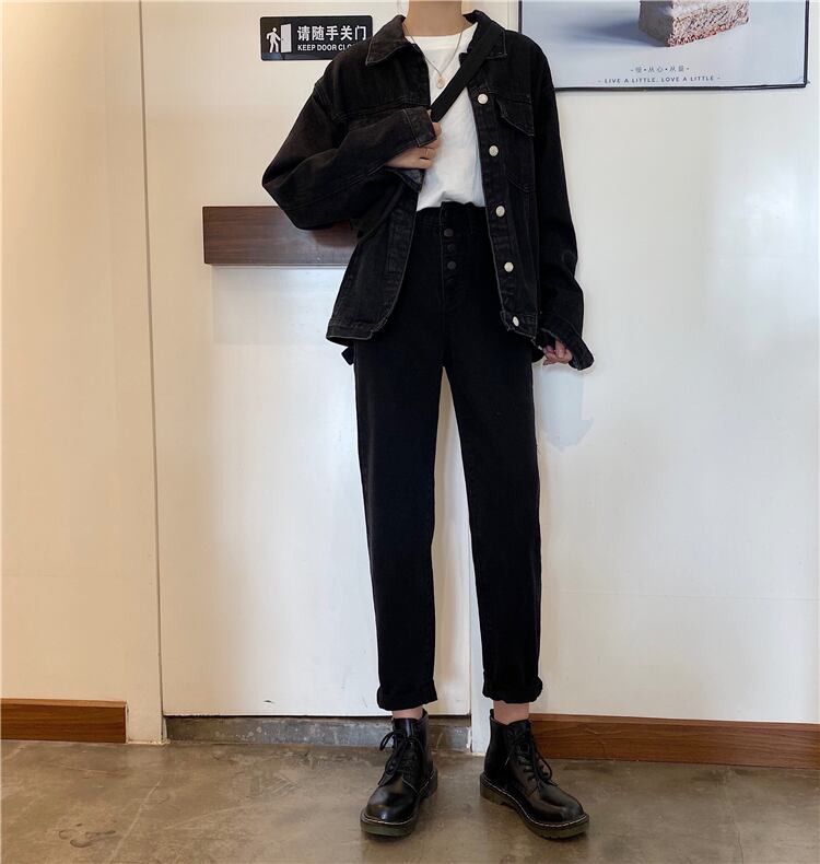 2020年初春のレトロなハイウエストの新しいバージョンは、細いストレートの古いパパのズボンの女性の黒のジーンズのタイドインでした 1号婦人20467684349
