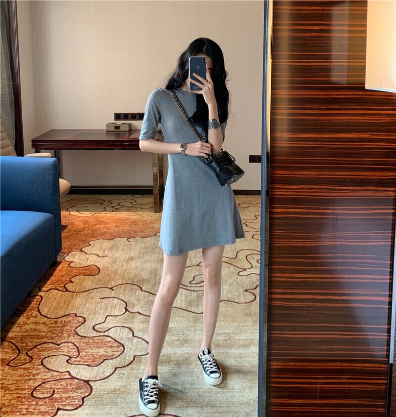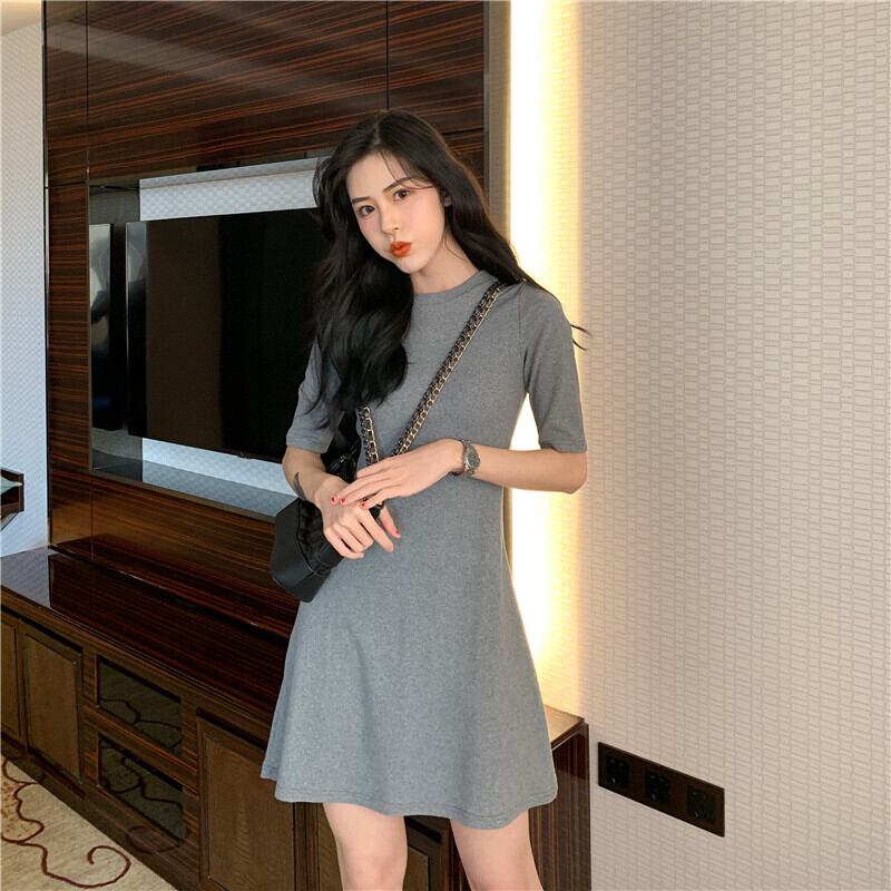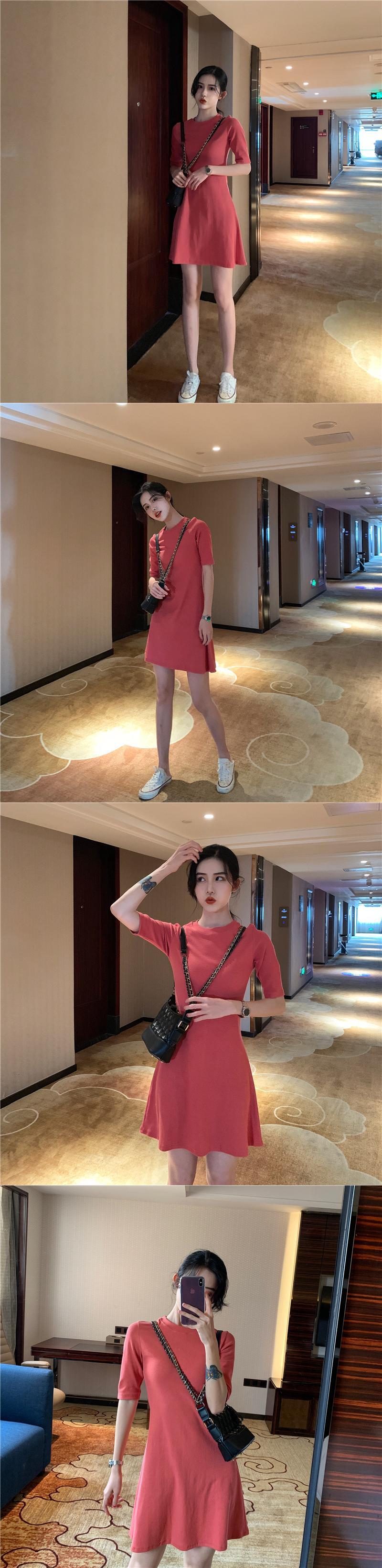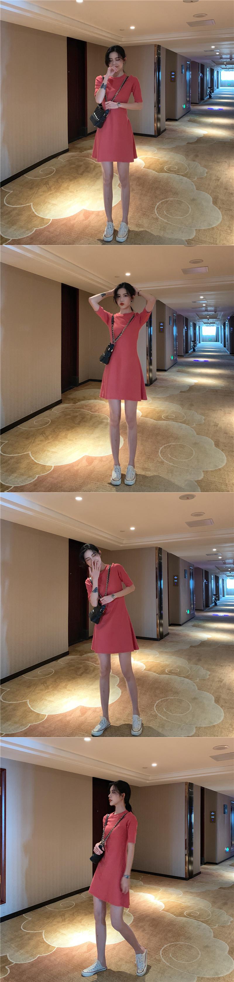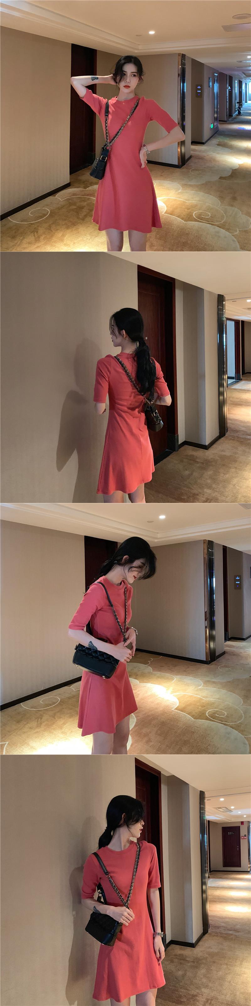 ラウンドネックウエストスリミングAラインスカートレディース2020年初春新バージョン無地ハイウエストスリムワンピース 1号婦人69308757628