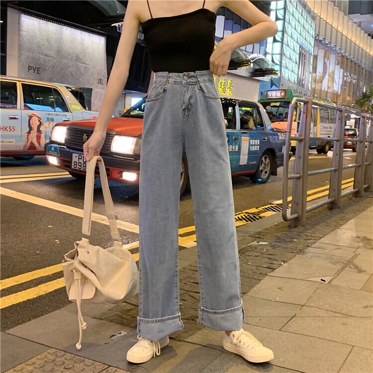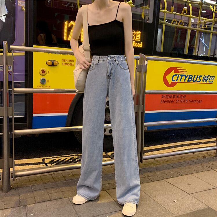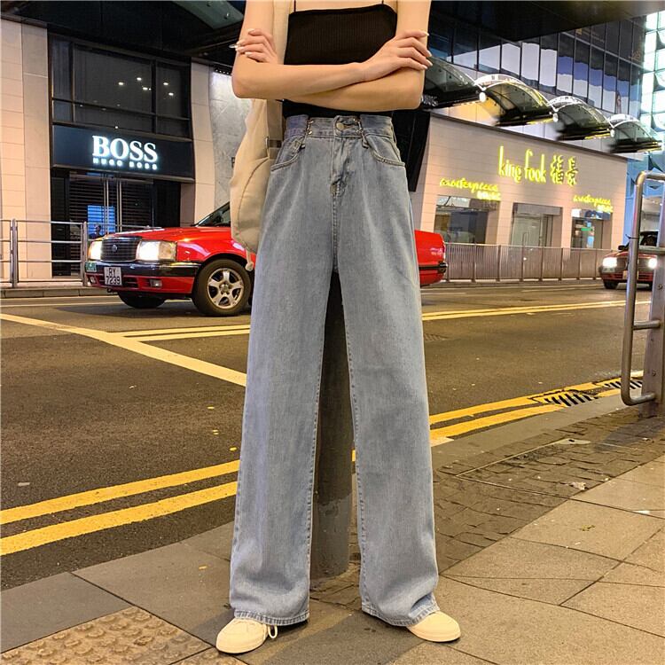 パンツレディース2020新しいルーズハイウエストスリムドレープストレートモップライトカラーの薄い夏のワイドレッグジーンズ 1号婦人76111796923