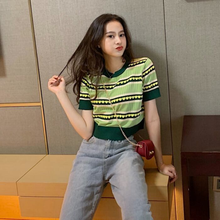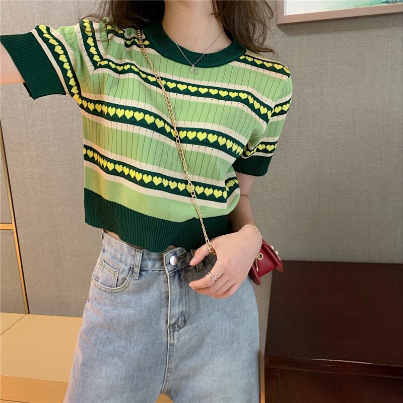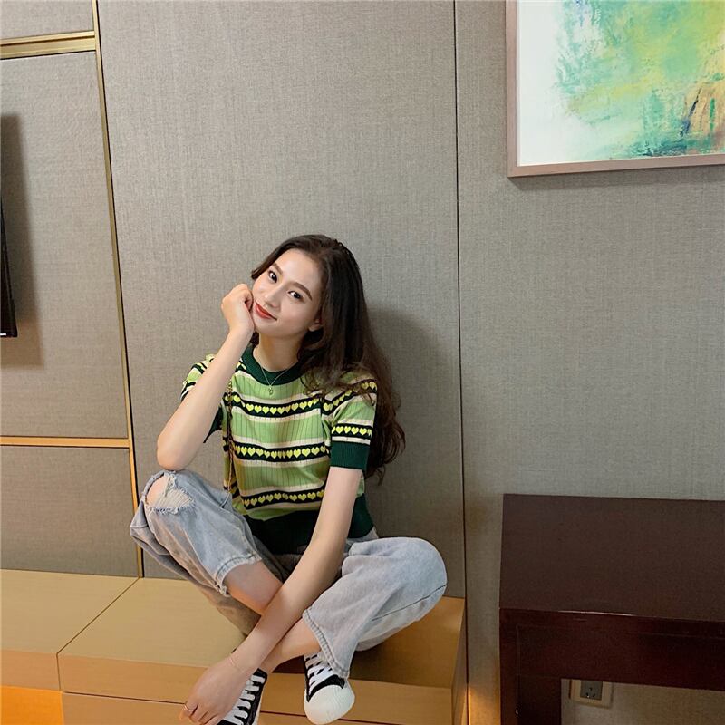 トップスの女性の2020年初春の新しいアボカドグリーンニット半袖Tシャツ女性の薄いルーズな薄いイントレンドを計画する 1号婦人81362895282