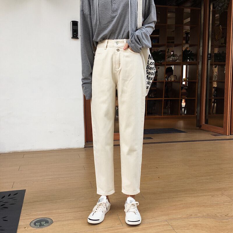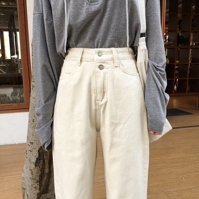 ヒュナジーンズ2020年春秋新作ルーズストレートパンツ学生は薄手の伸縮性ハイウエストクロップドパンツ 1号婦人32216036019
