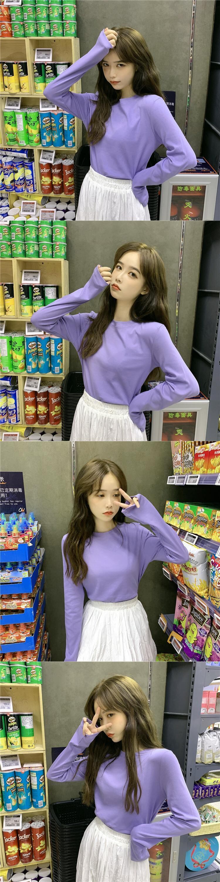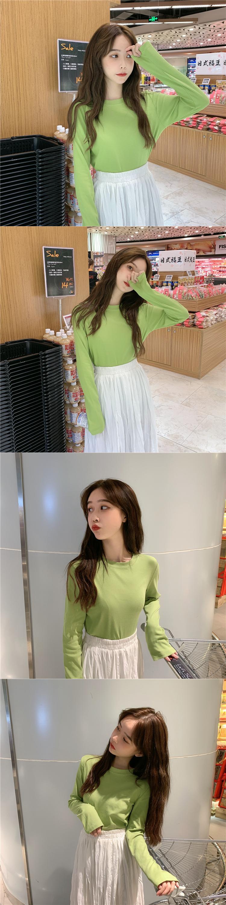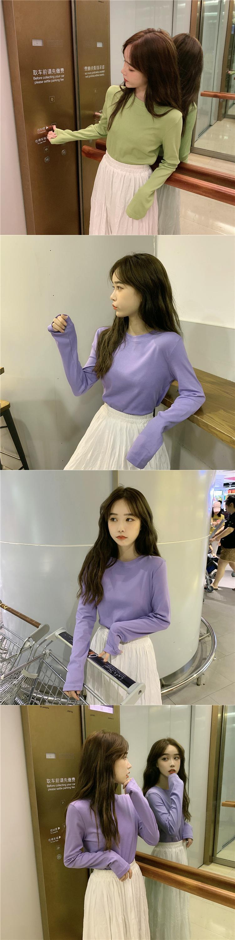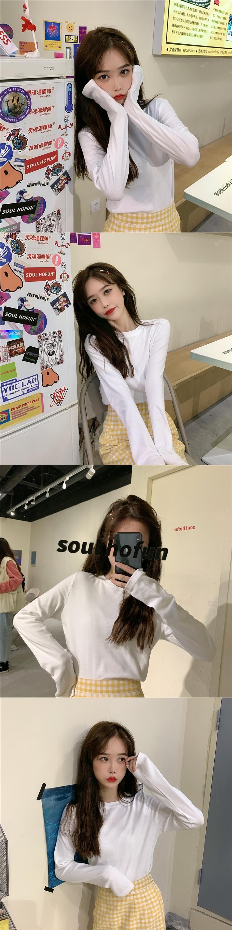 ウエスタンスタイルのボトミングシャツ女性の2020年初春の新しいスリムで薄い学生の無地の野生の長袖Tシャツトップイン 1号婦人3251438700