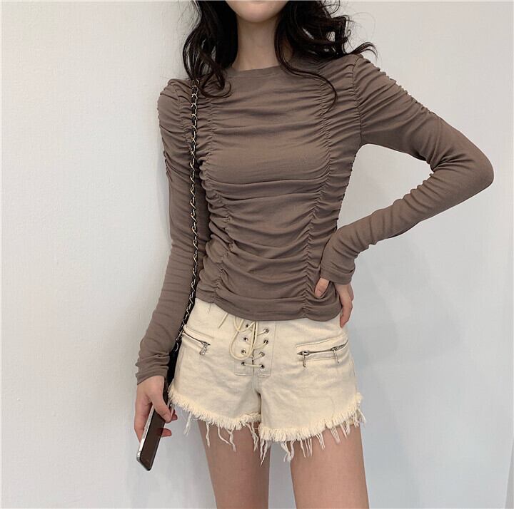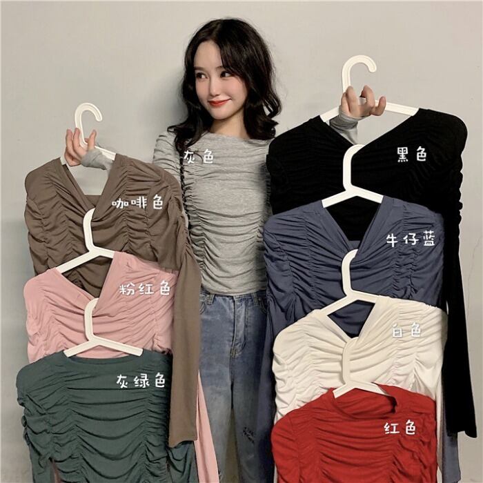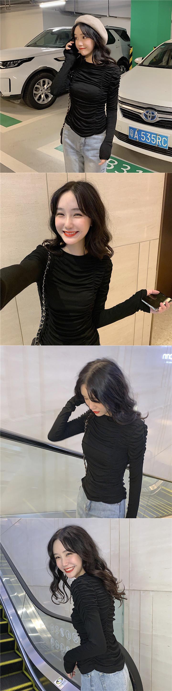 初秋の婦人服2019新しい流行の折り畳み弾性薄切りボトミングシャツストレッチ長袖Tシャツ婦人服 1号婦人33234714745