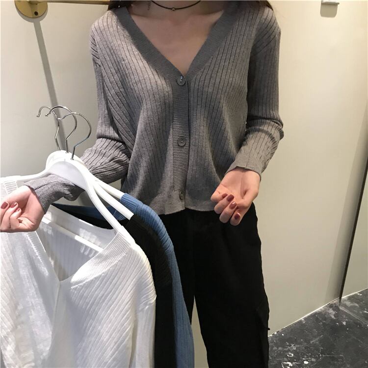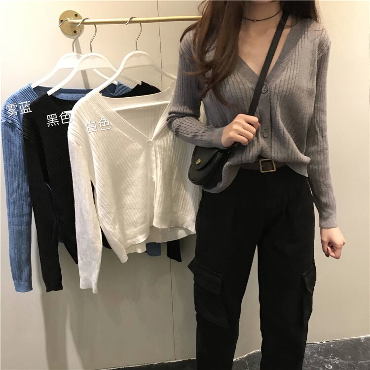 セーター2020新秋ショートニットセーター秋長袖カーディガンレディースジャケットやさしい風Vネックトップ 1号婦人5561910360