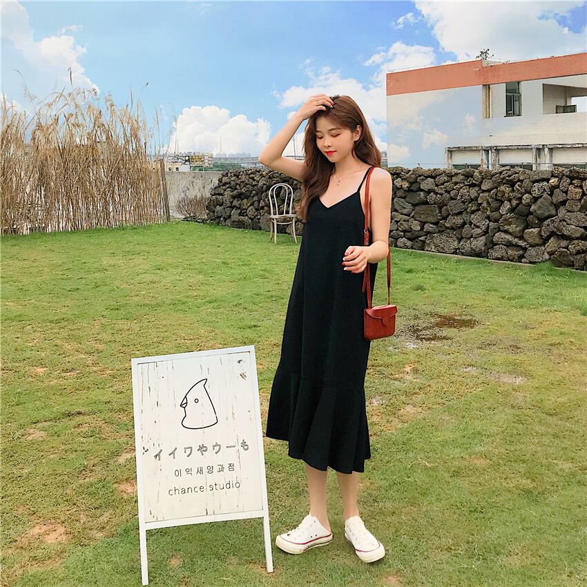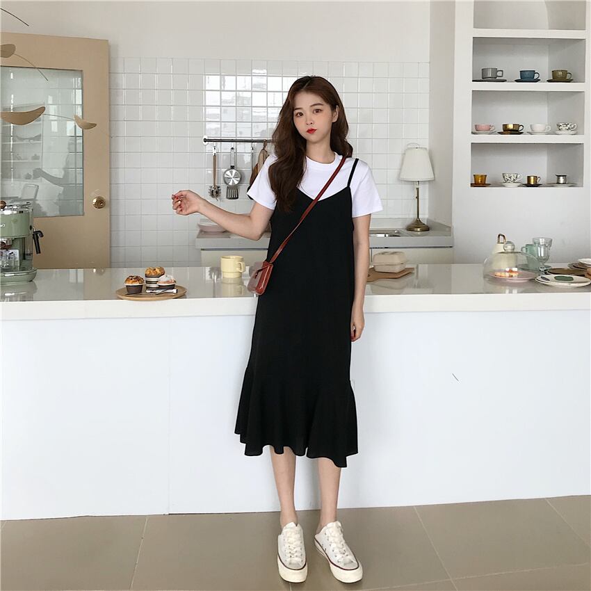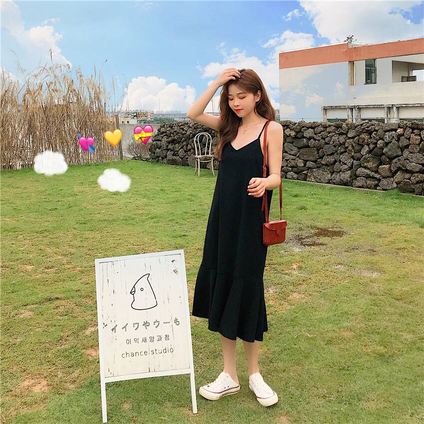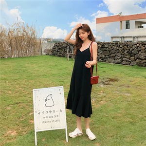 ドレスウエストが細く、キャミソールブラックフィッシュテールスカートミドル丈スカート女子学生の早春バージョン 1号婦人14908638742