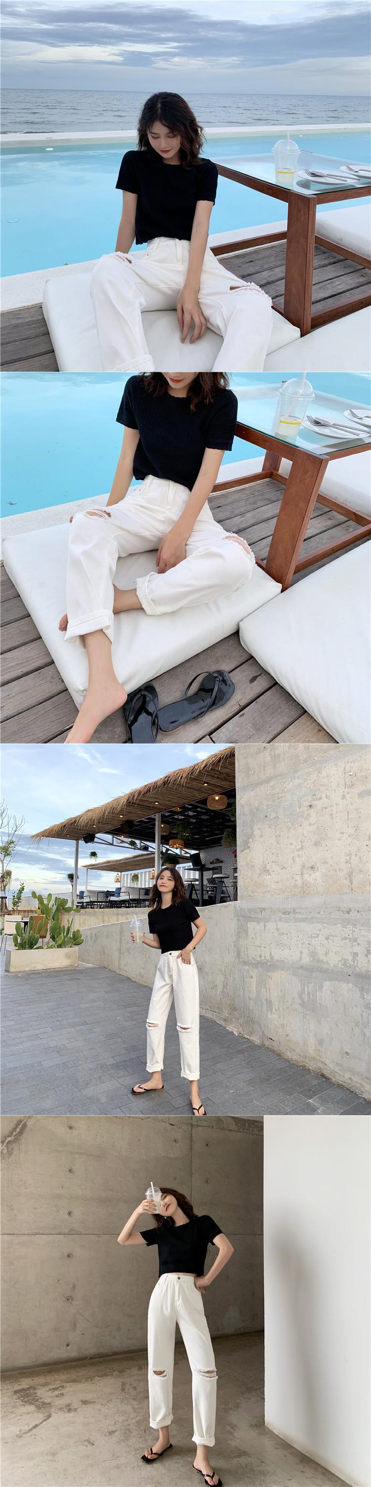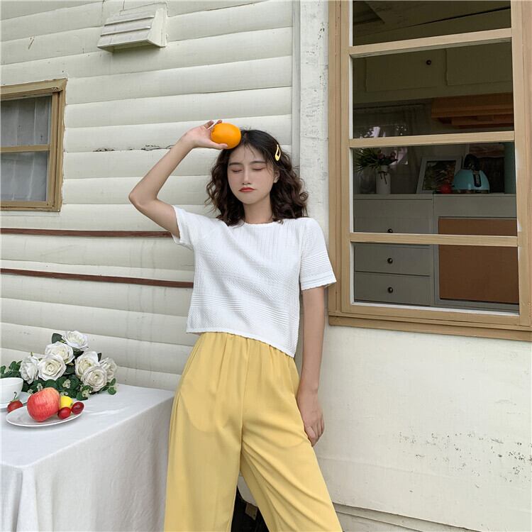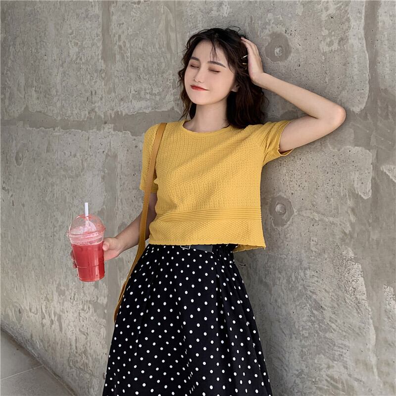 大ざっぱなトップデザインセンスラウンドネックショートスリムニットセーターボトミング半袖Tシャツレディース2020年春新作 1号婦人7278315220