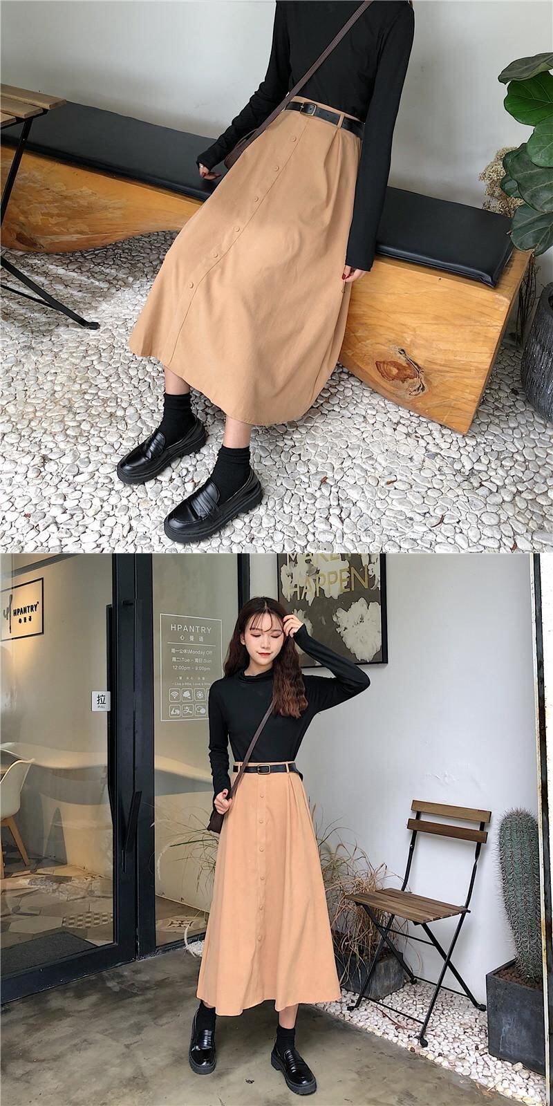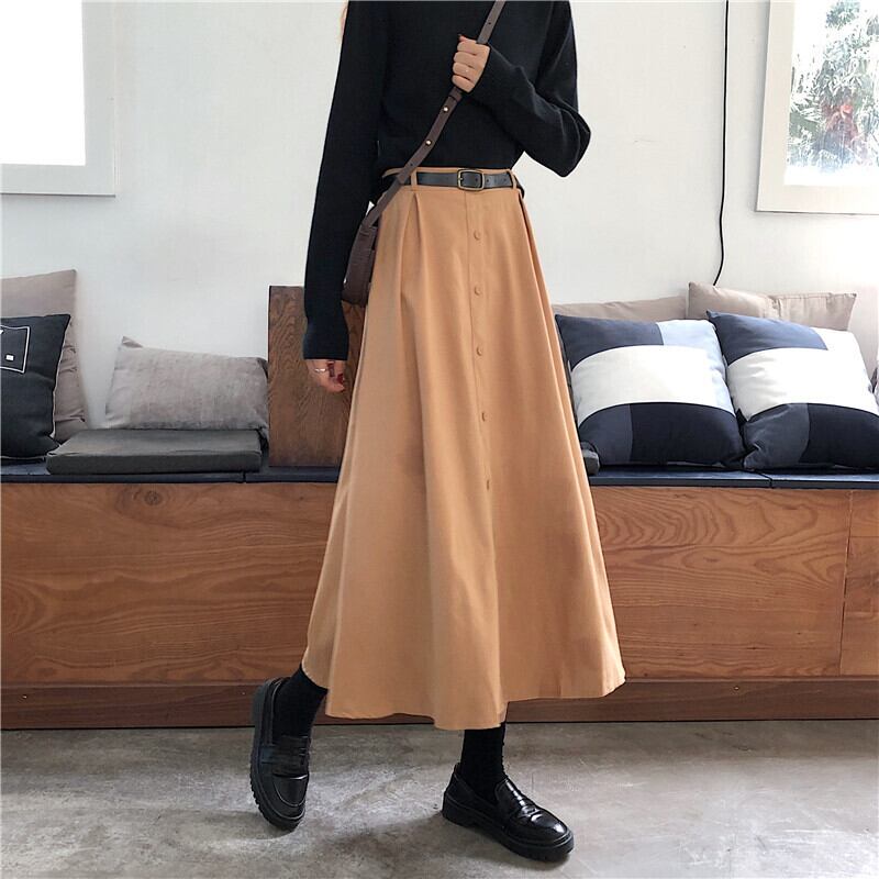 2020年初春の新しいミドル丈ワンブレストハイウエストスカート、女性用の細くて大きいスカート、Aラインスカート、フリーベルト 1号婦人31179375072