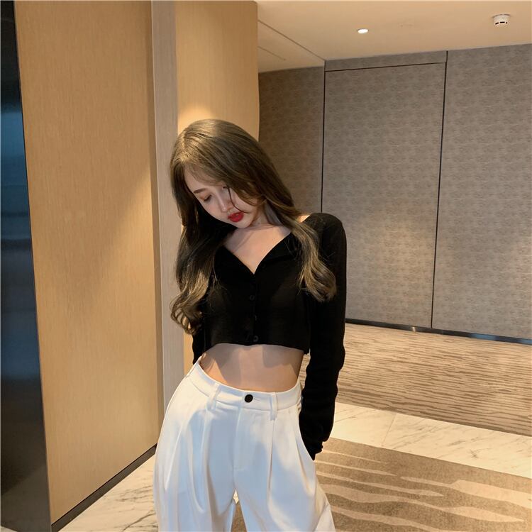 レトロな香港スタイルのショートニットカーディガンレディース2020年春の新しいセクシーなクロップド長袖オールマッチタイトフィット服 1号婦人9214170842