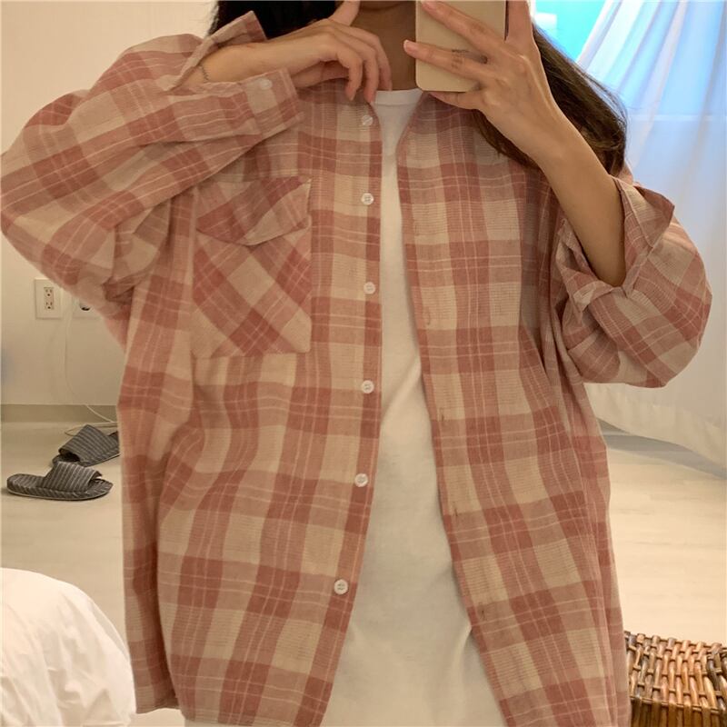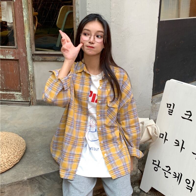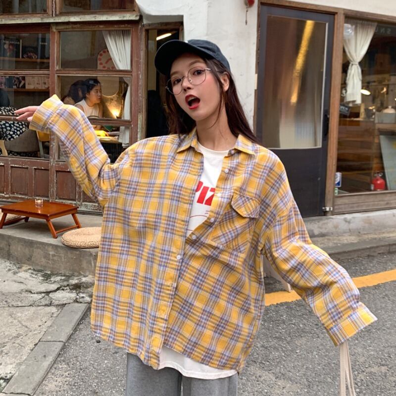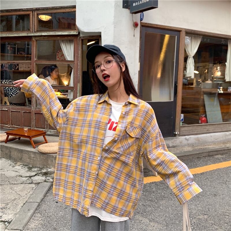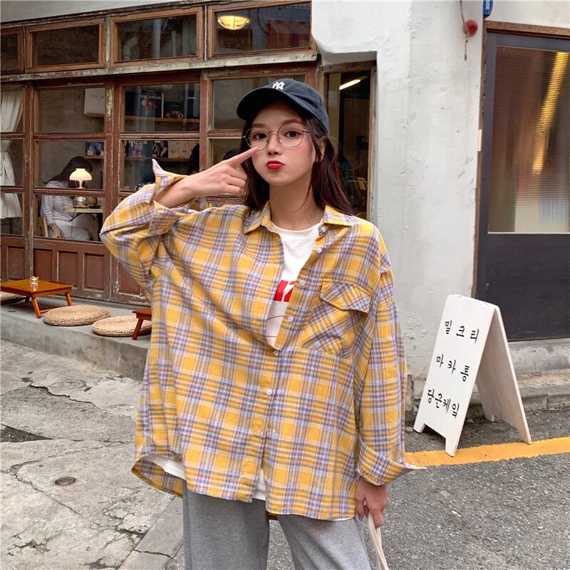2020年秋の新作インルーズチェック柄シャツ女子学生オールマッチネットセレブファッショントップス 1号婦人65291829903