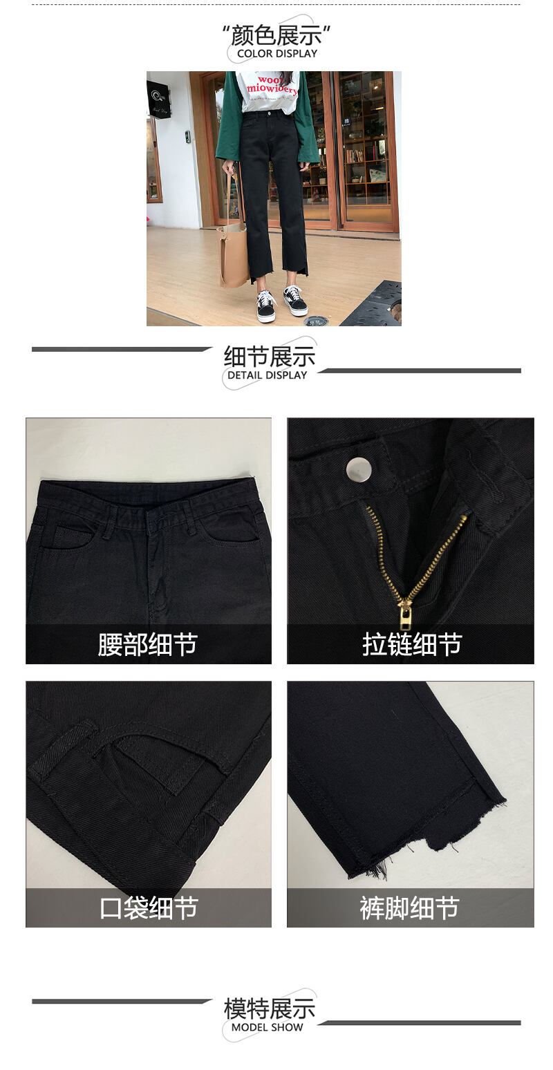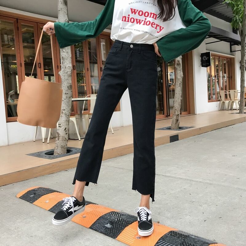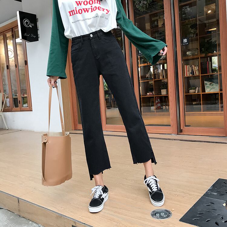 ジーンズレディース春服2020新バージョングレーブラックルーズワイドレッグスチューデントストレートスプリットナインポイントパンツ 1号婦人5093672346