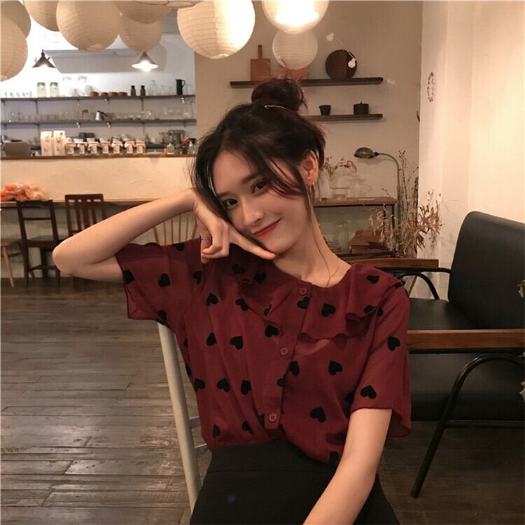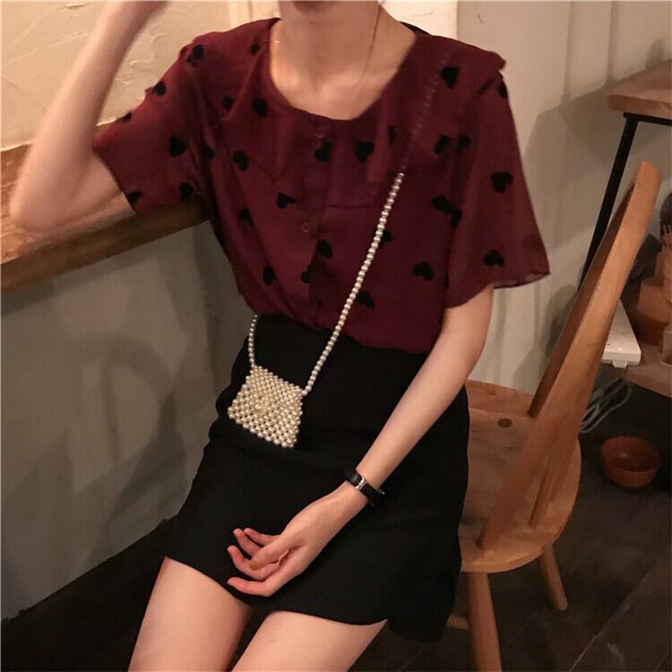 2020年初春の新バージョンのins学生の小さな新鮮な甘い愛の刺繍半袖シフォンシャツトップの女性 1号婦人6225747236