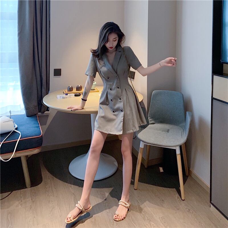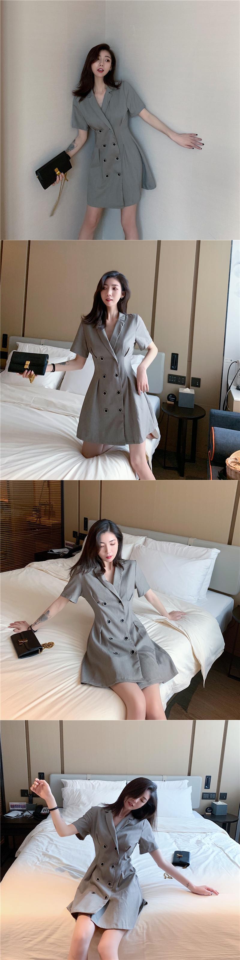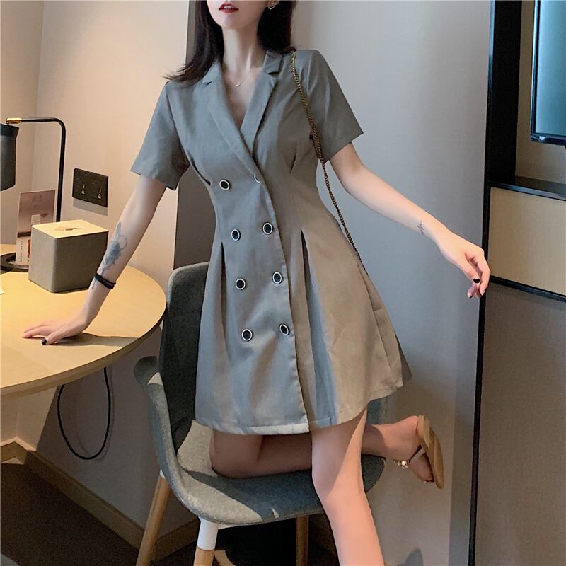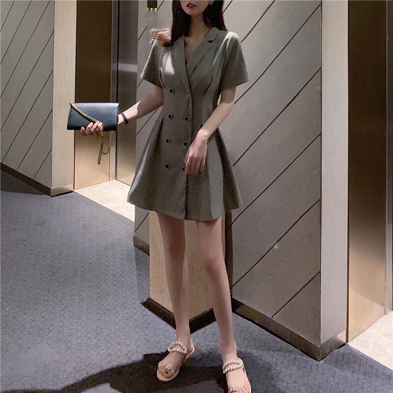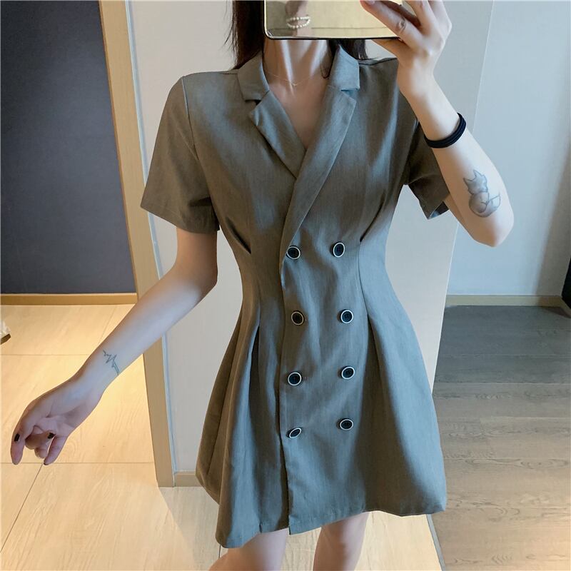 2020年初春の新しいレトロな香港スタイルのダブルブレストスーツの襟のファッションスリムドレス女性のワイルドウエストスカート 1号婦人83259849249