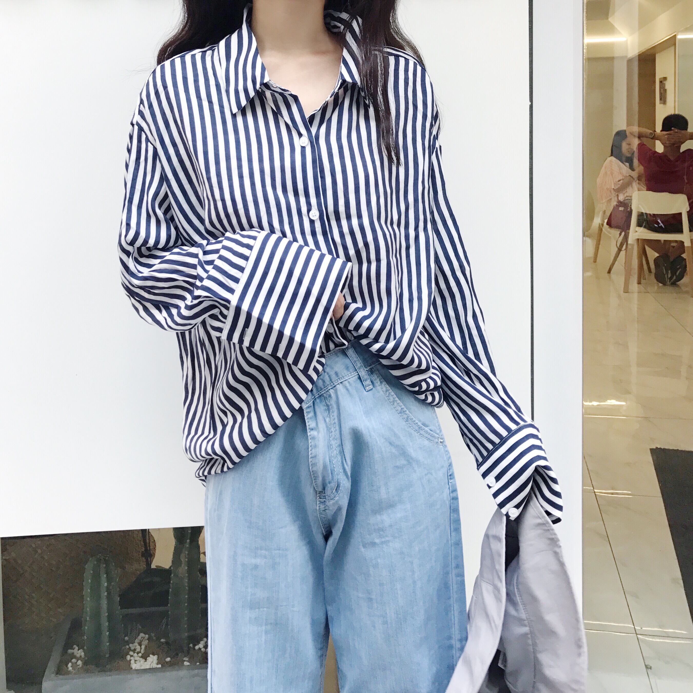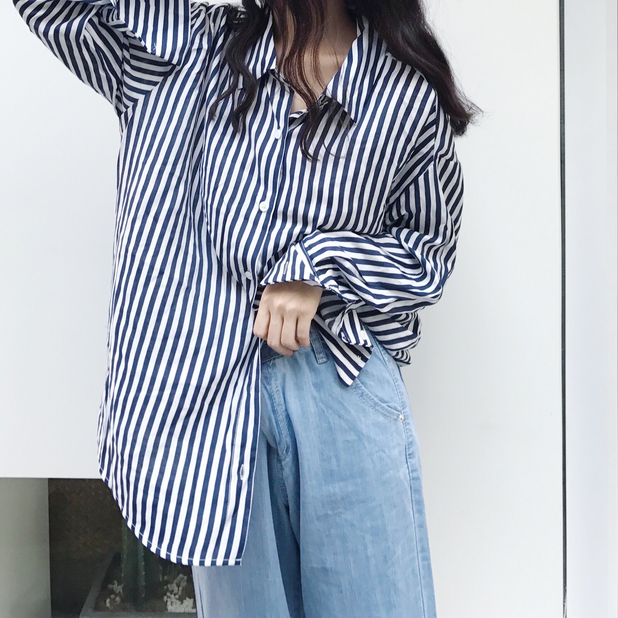 2020年春の新スタイルデザインセンスニッチストライプワンウェイネックストラップレスミドル丈長袖シャツトップス 1号婦人29310032772