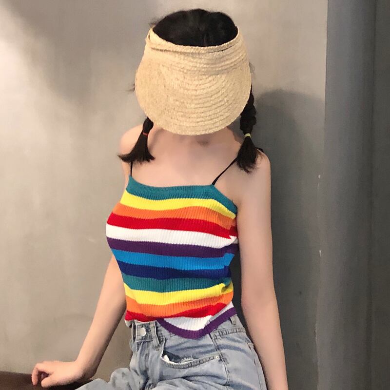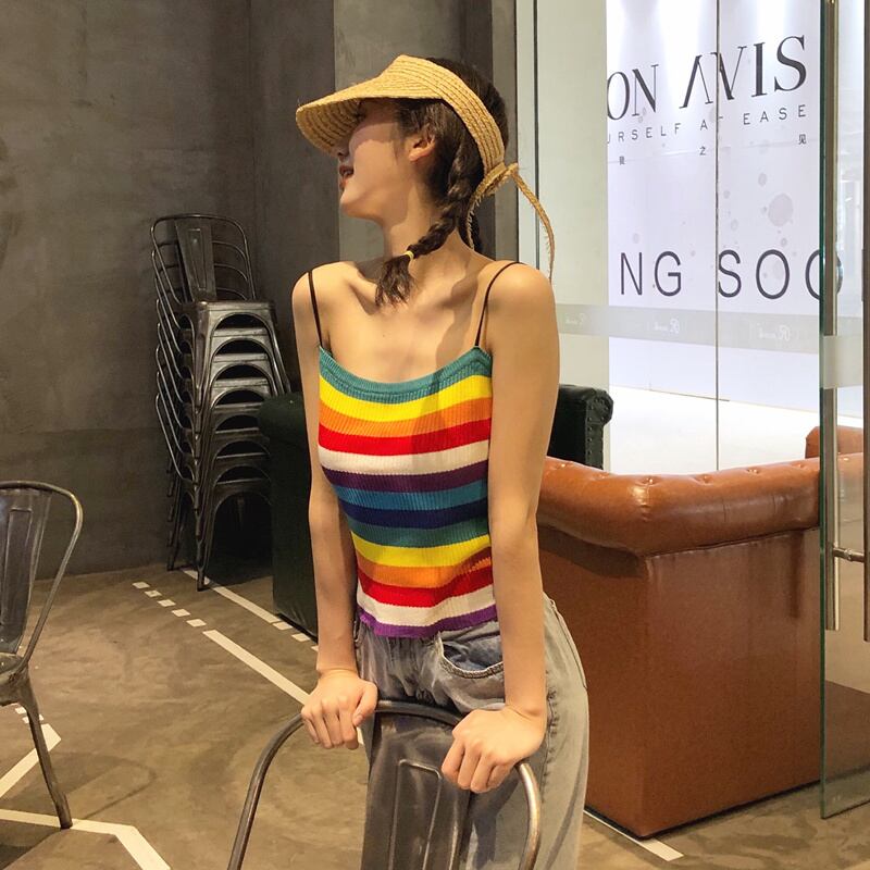 春先の小さなフレッシュレインボーストライプキャミソールレディースショートスリムスリミングインナージャケット学生オールマッチイン 1号婦人12060322315
