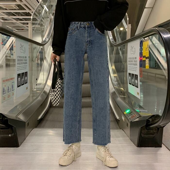 薄くて薄い2020年春秋新作ハイウエストクロップドパンツ学生ワイドレッグパンツストレートジーンズ女性 1号婦人43908325903