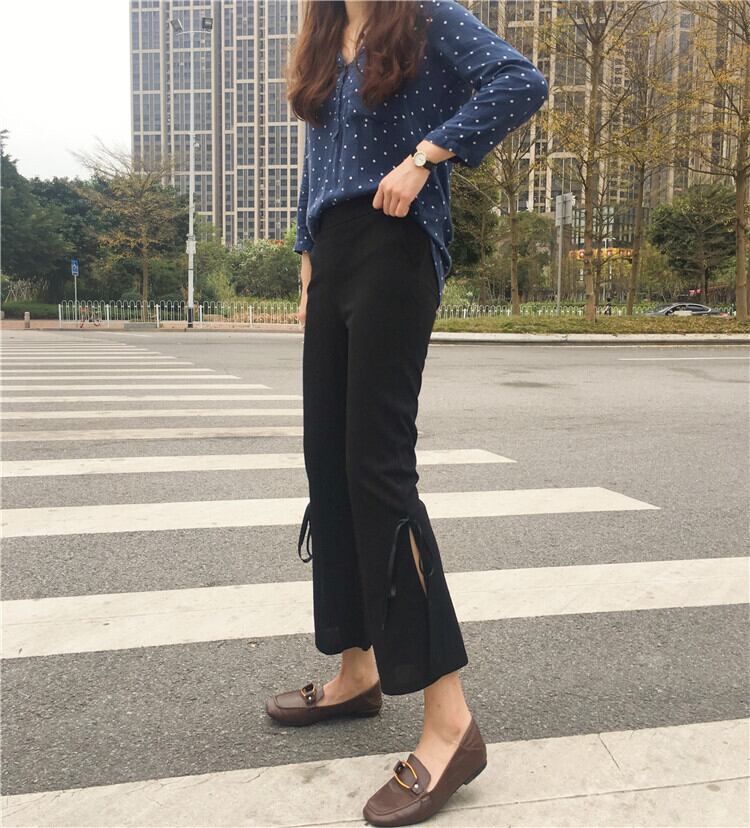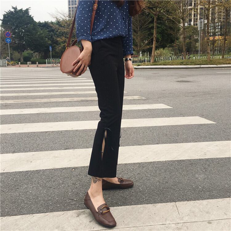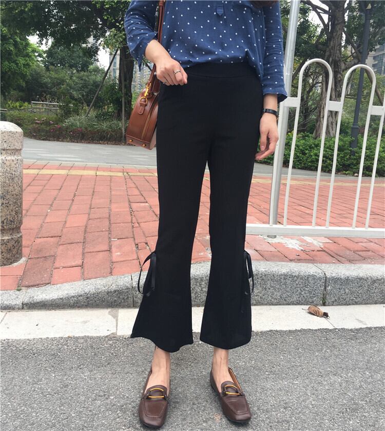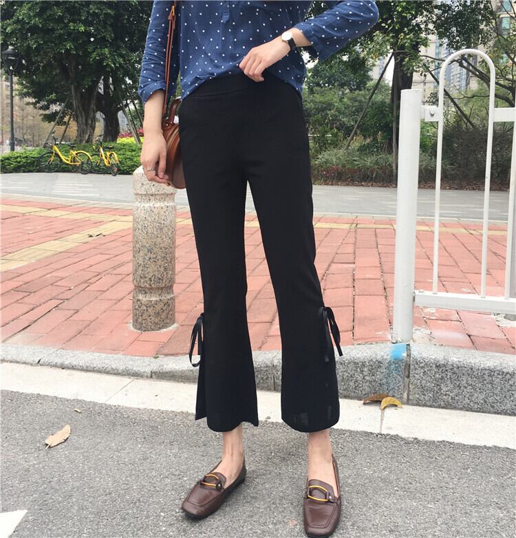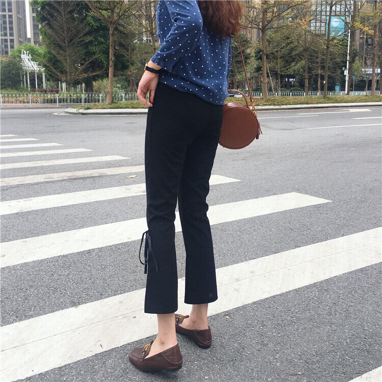 2020年初春新作ハイウエストサイドスリットナインポイントカジュアルパンツスリムスリミングレースアップフレアパンツ 1号婦人64719545830