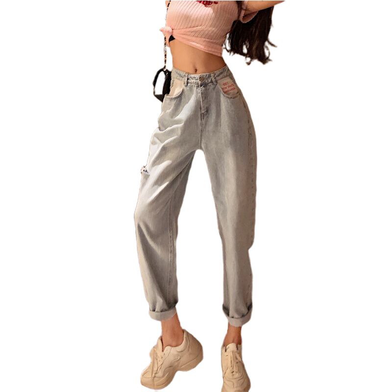 2020年初春のルーズファッションオールマッチリップドジーンズ女子学生ハイウエストドレープハーランパンツの新バージョン 1号婦人53639077852