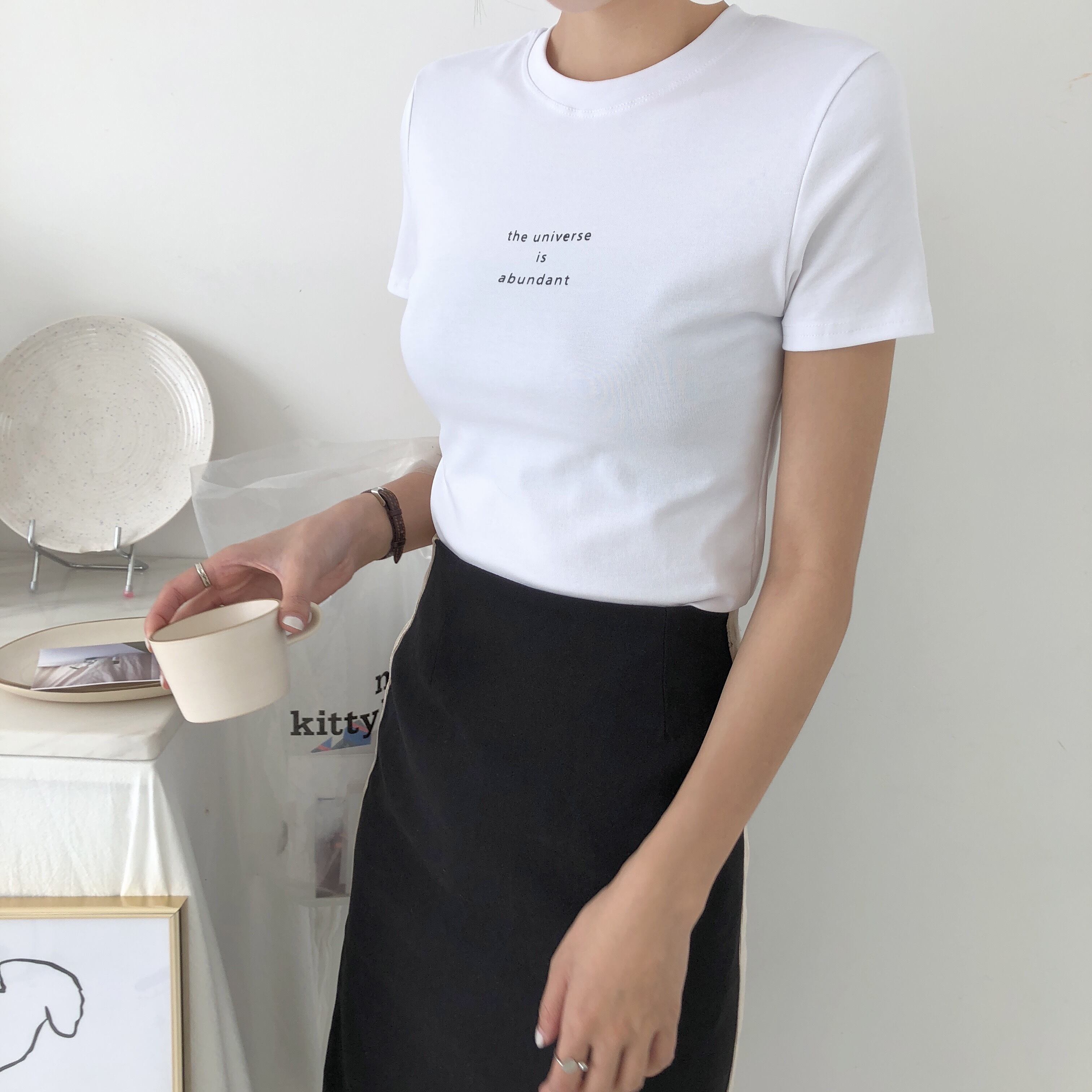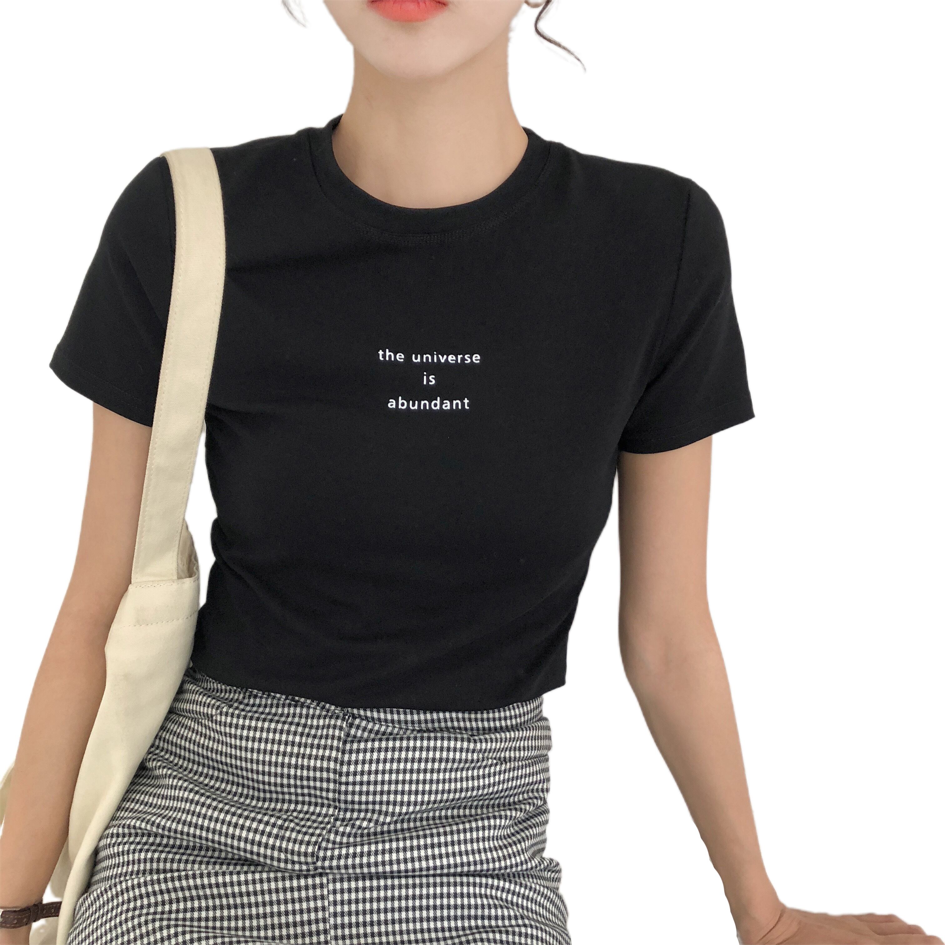 半袖Tシャツレディース2020年春新作香港フレーバーワイルドレタープリントスリムストレッチスチューデントショートトップ 1号婦人20395951502