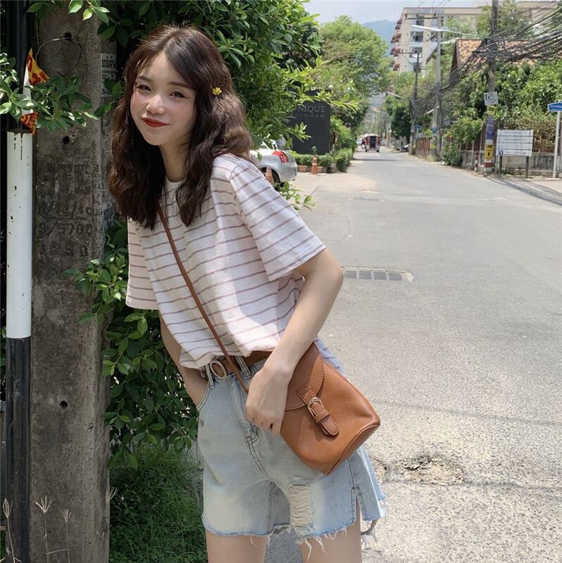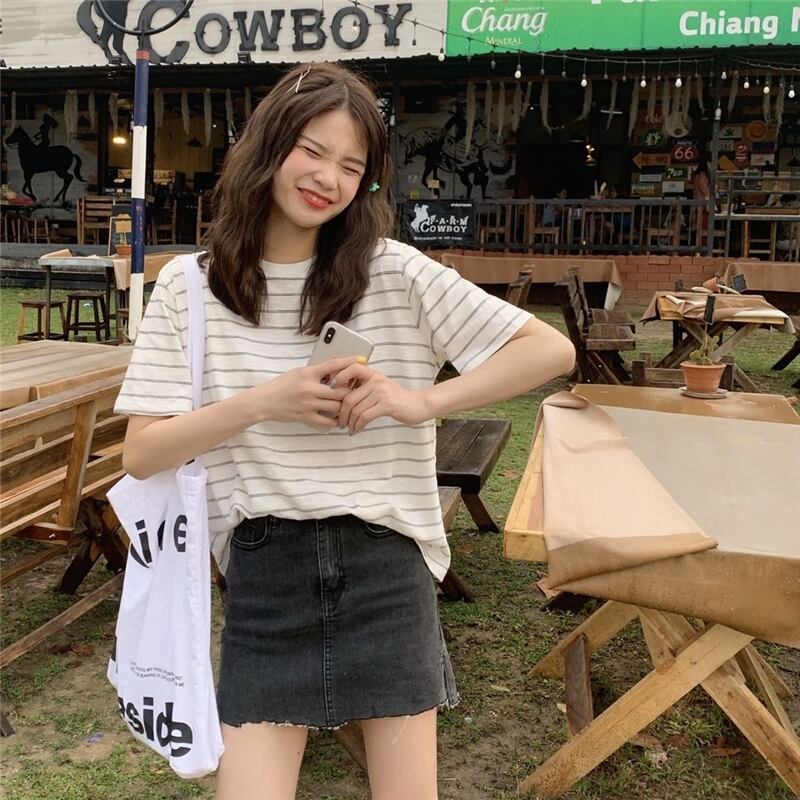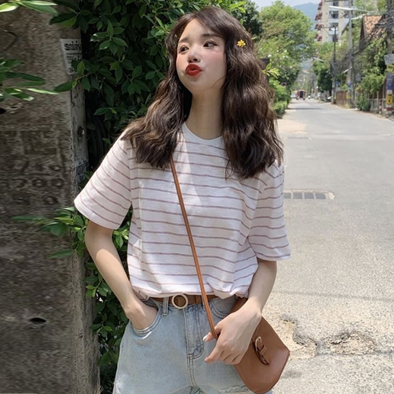 半袖Tシャツレディース2020新しい早春バージョンのワイルドストライプレトロヘッジ学生のeignスタイルのボトミングシャツトップ 1号婦人40826931365
