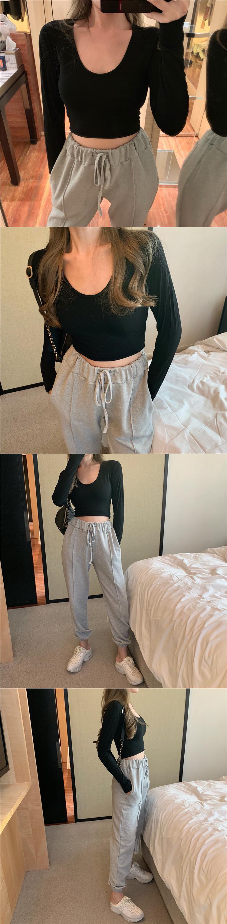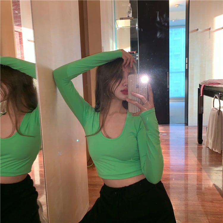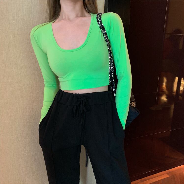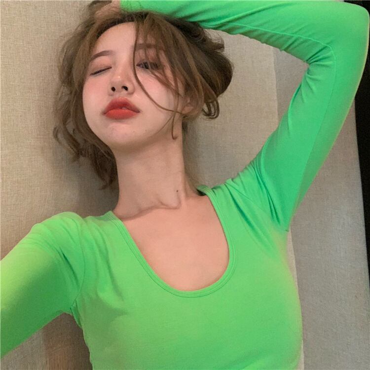 2020年初春の新しいシックな潮のスリムなスリムな長袖シャツ、慎重な機械、低い丸い首とへそを持ったTシャツの女性 1号婦人83752480145