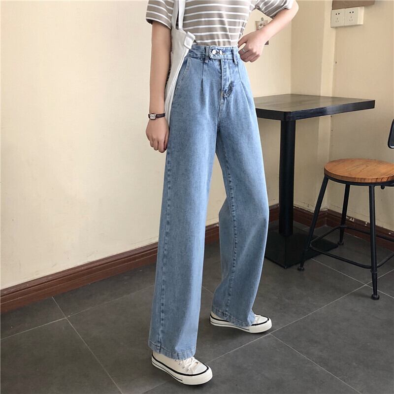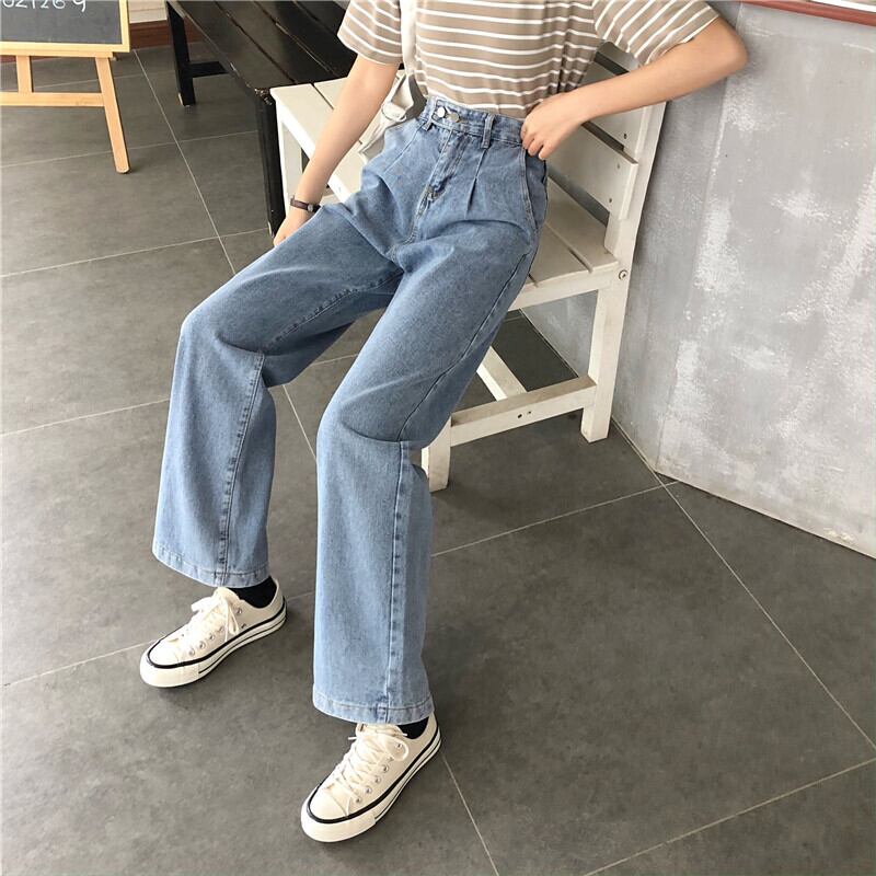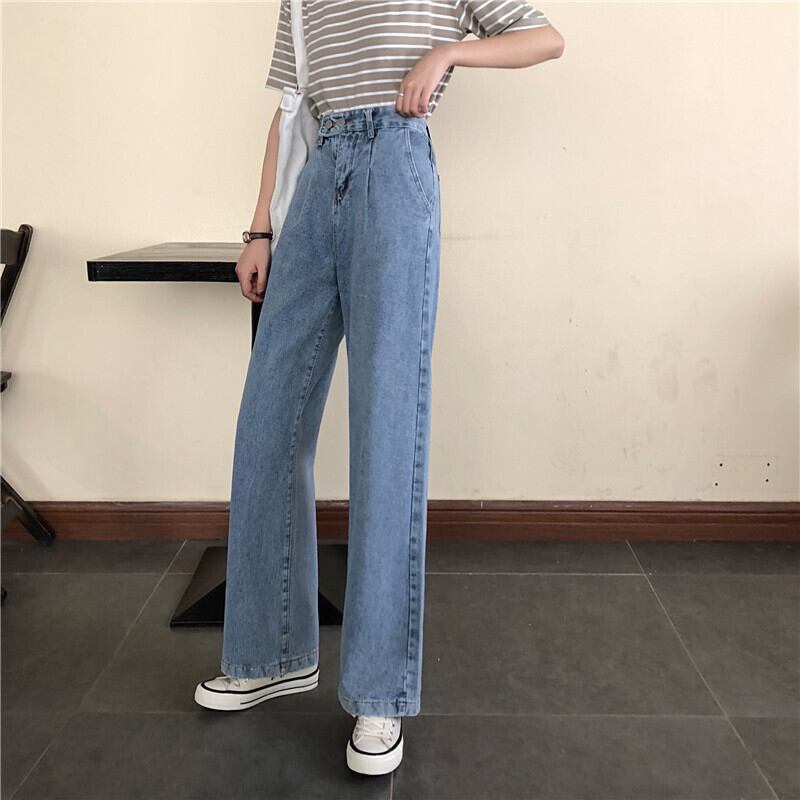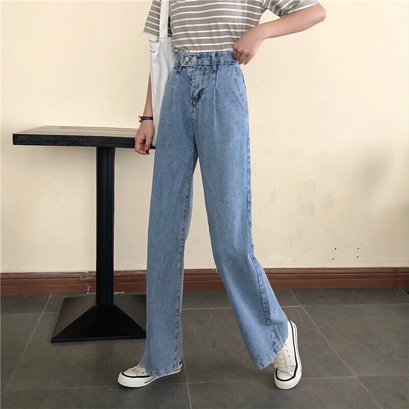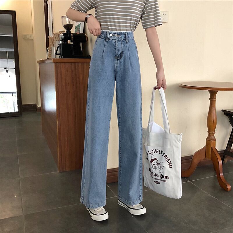 ヒョナジーンズレディース2020年春新作スタイルルーズハイウエストシンワイドレッグストレートパンツロングパンツトレンド 1号婦人89917372780