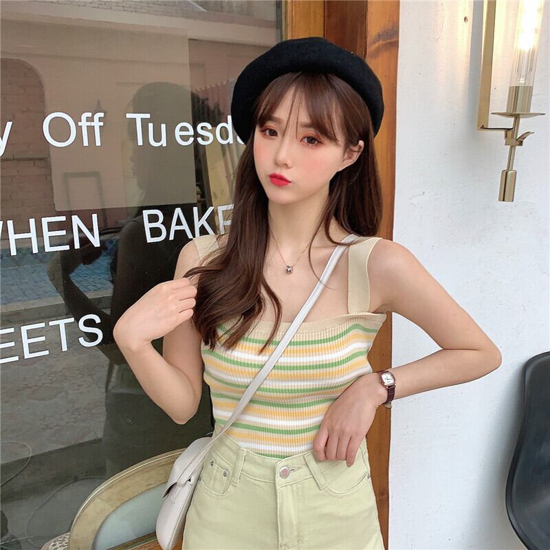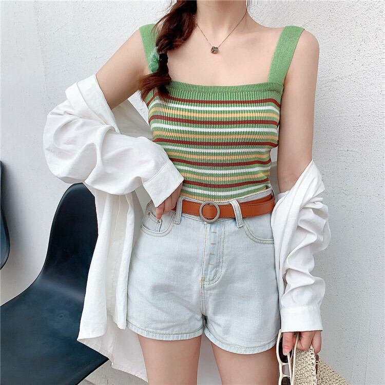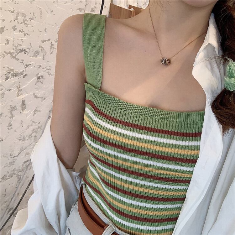 レディース春服2020新アウターヒョナカラーストライプニットキャミソールオールマッチボトミングシャツトップトレンド 1号婦人55586082208