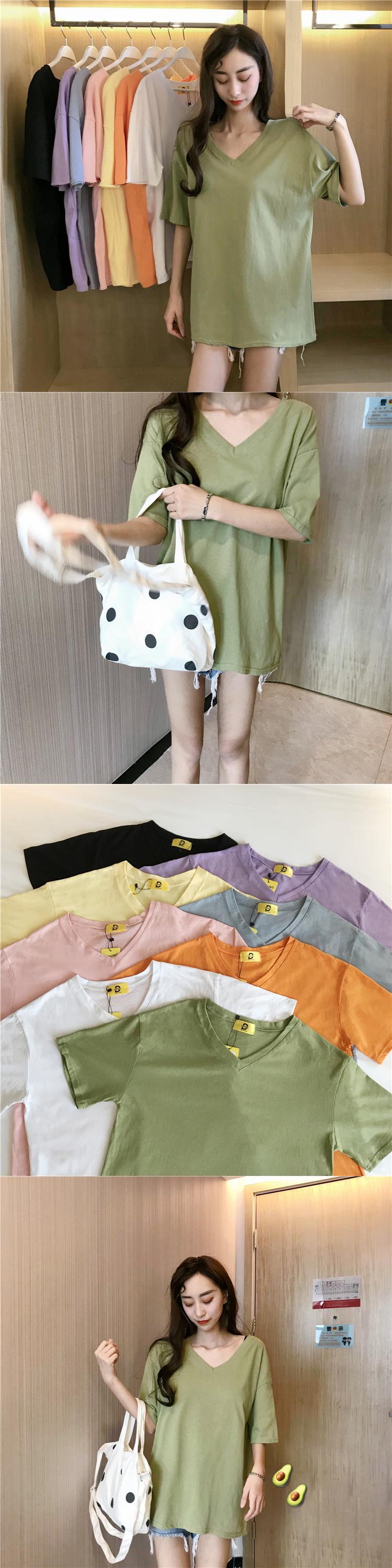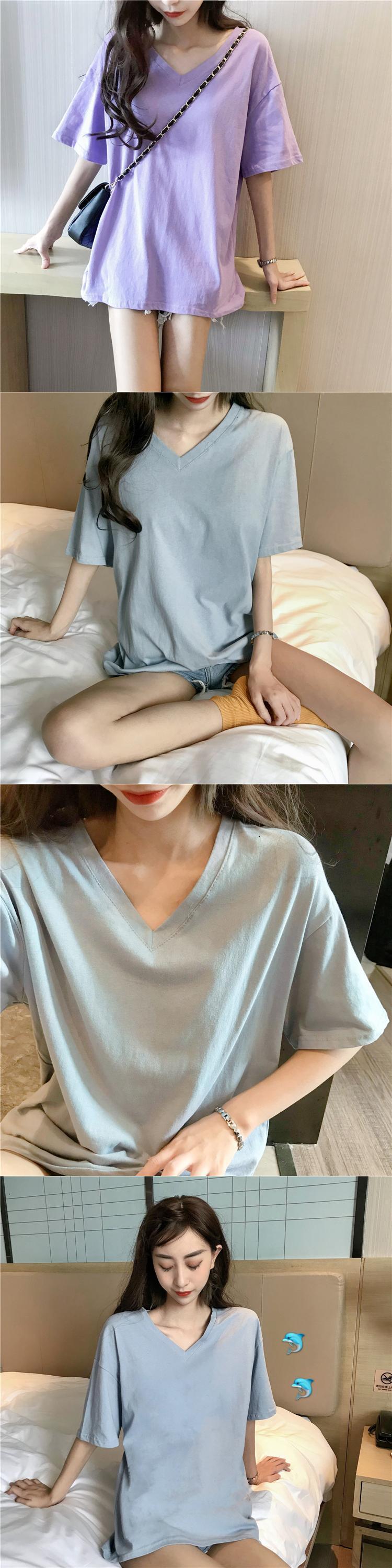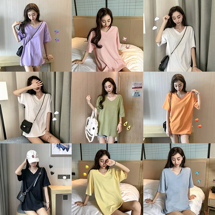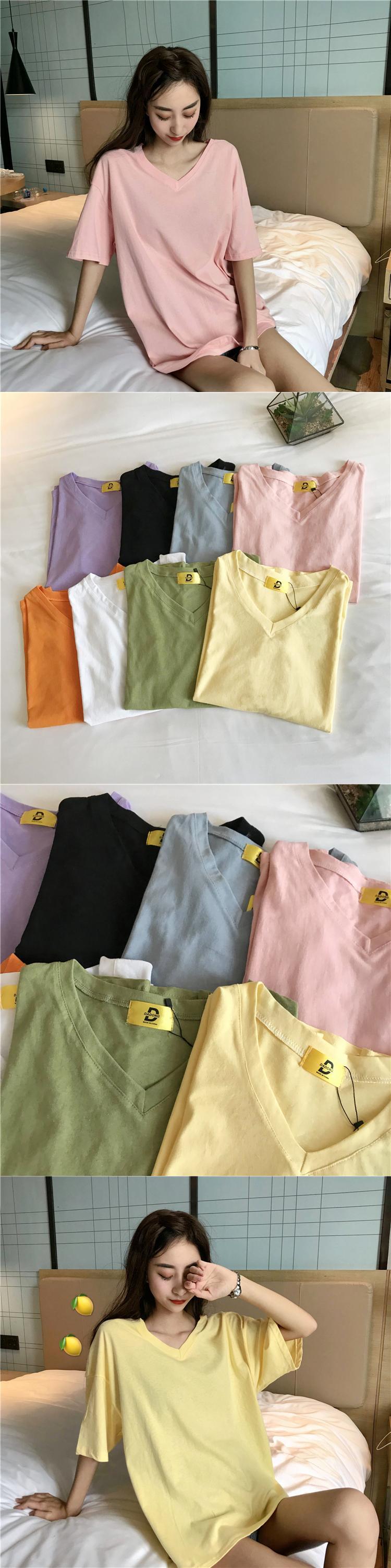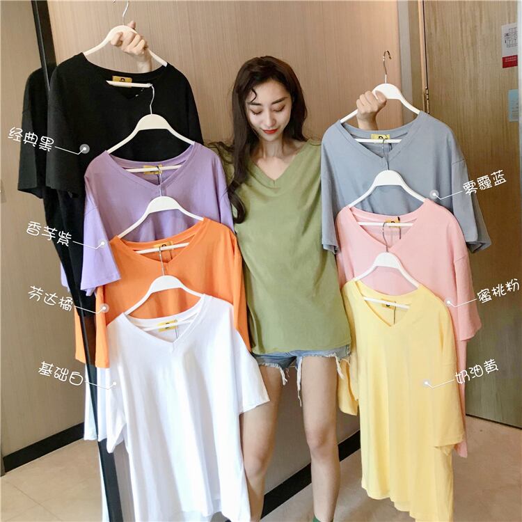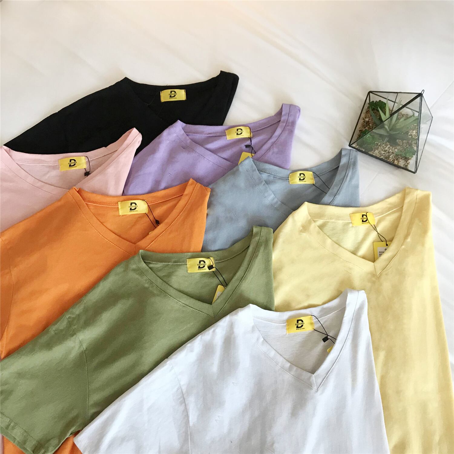 2020年夏の新しいヴィンテージVネックTシャツ半袖バージョン、ルーズなウエスタンスタイルのボトミングシャツのトップトレンド 1号婦人83422544299