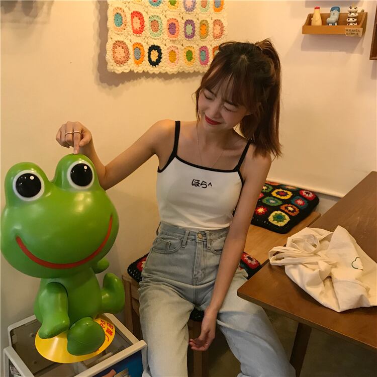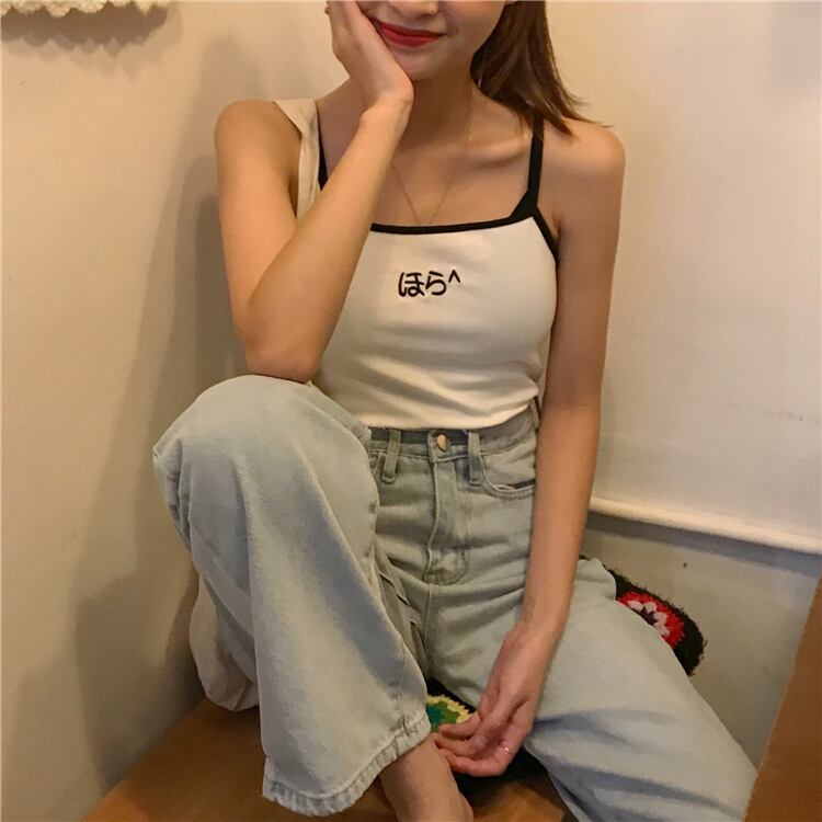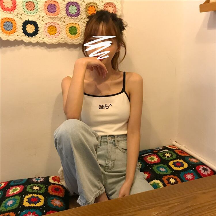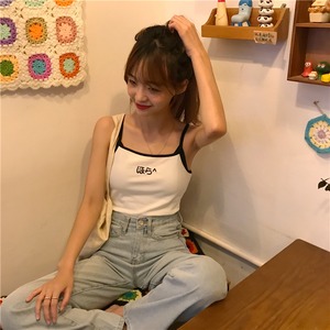 春と夏の新しいオールマッチの黒と白のコントラストカラーの甘い文字が内側に刺繍され、小さなキャミソール、外側に女性のジャケットがあります 1号婦人5549473273