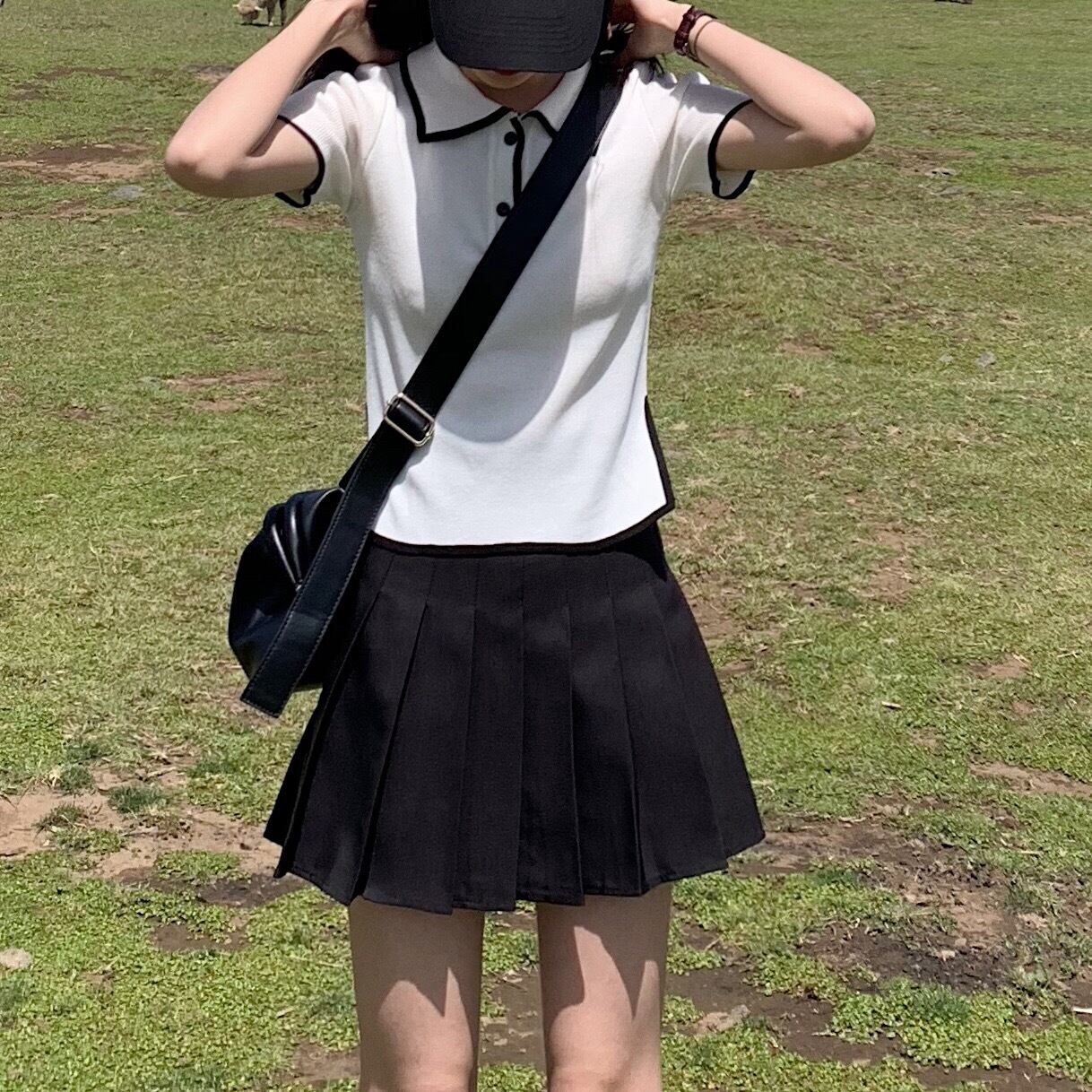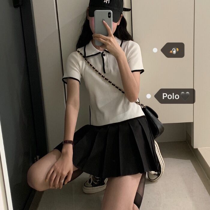 2020年春の新夏カレッジスタイルスーツツーピースポロカラー半袖セータープリーツスカート女性 1号婦人11887108649