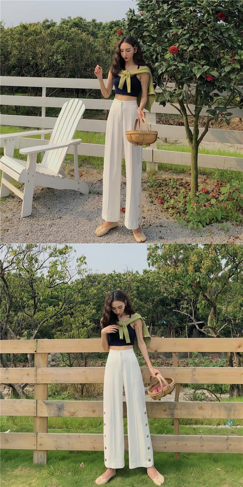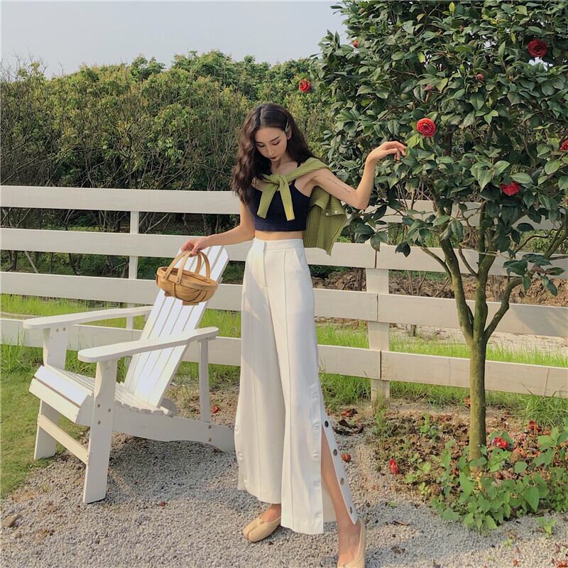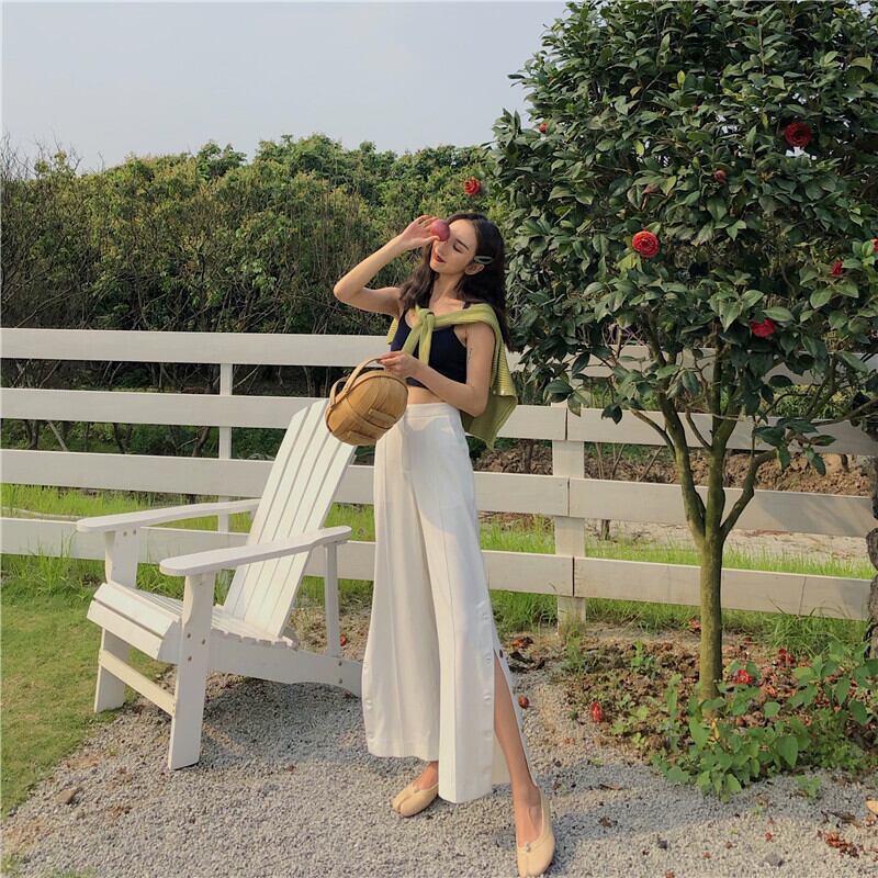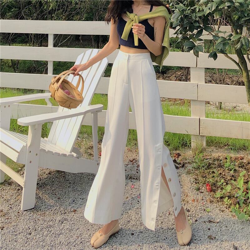 2020年春のシンプルなハイウエスト無地カジュアルパンツレディースワイルドカジュアルスリムストレートレッグパンツスプリットワイドレッグパンツトレンド 1号婦人31773970168
