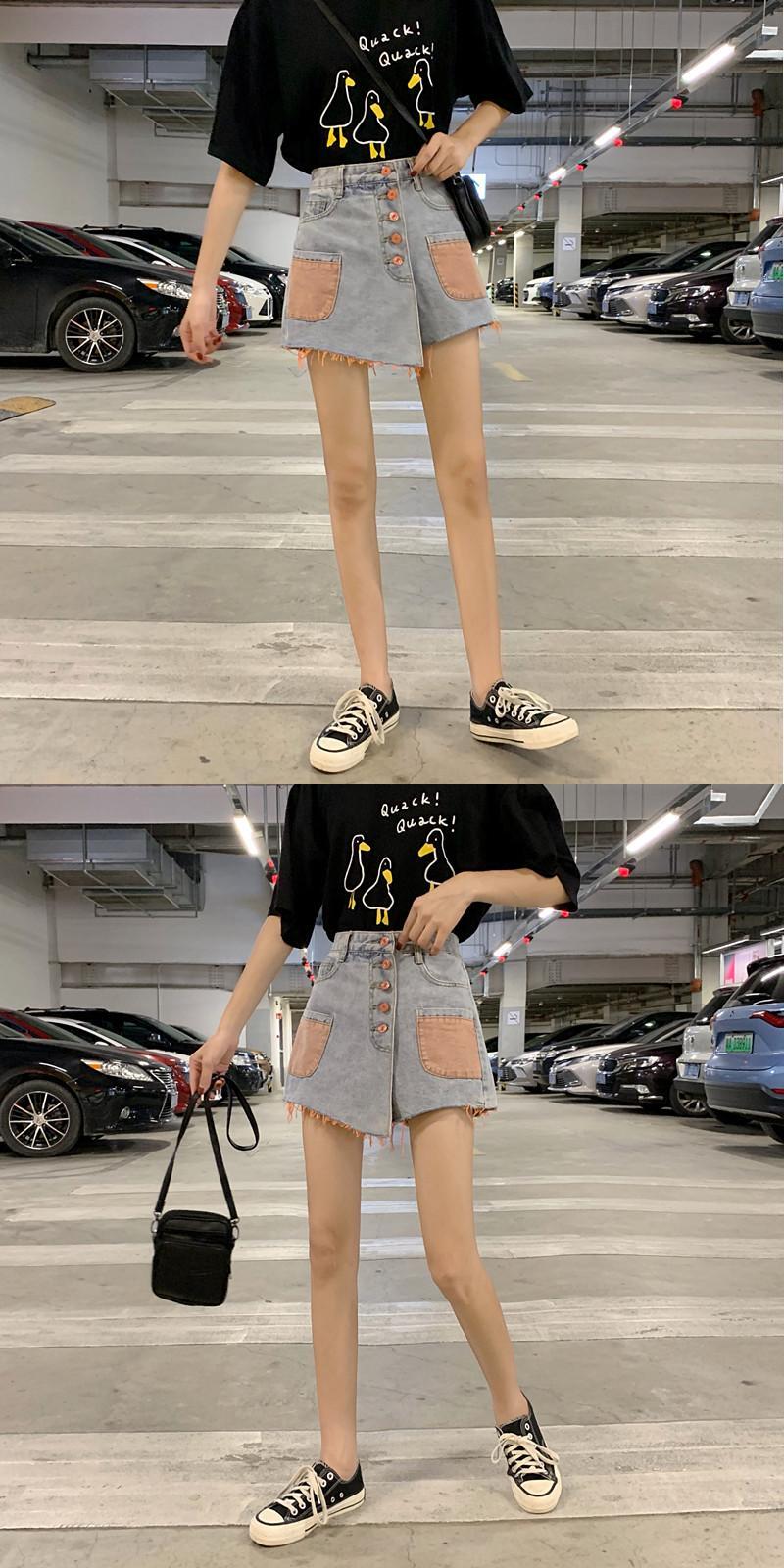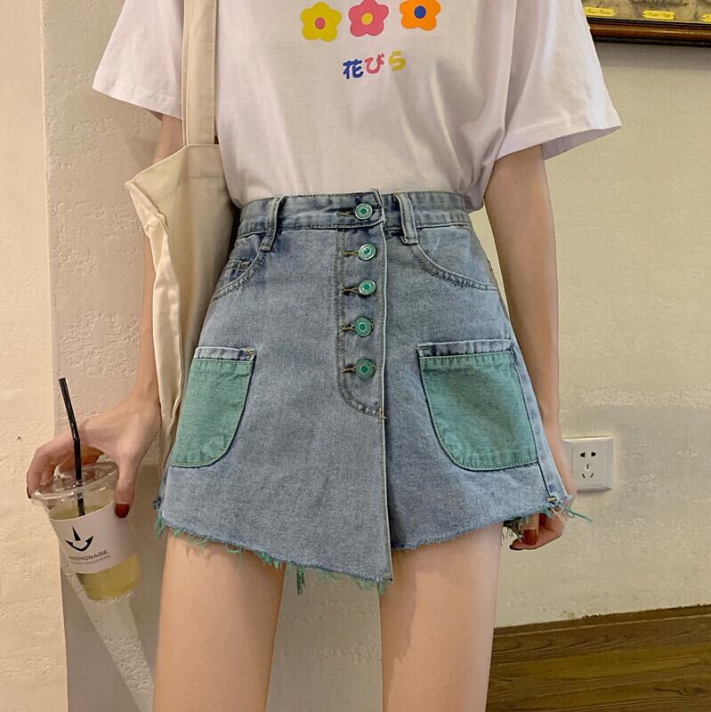 2020年春バージョン新作センスステッチハイウエスト薄擦りデニムショーツ女子学生ストレートスカートパンツ 1号婦人3510372668