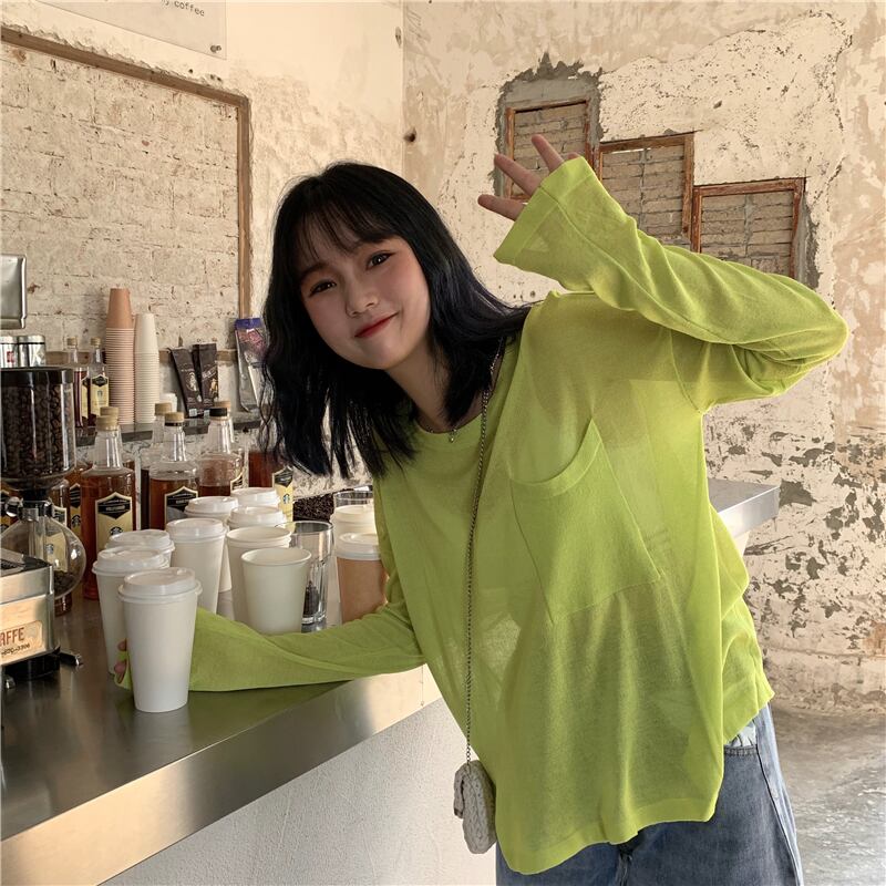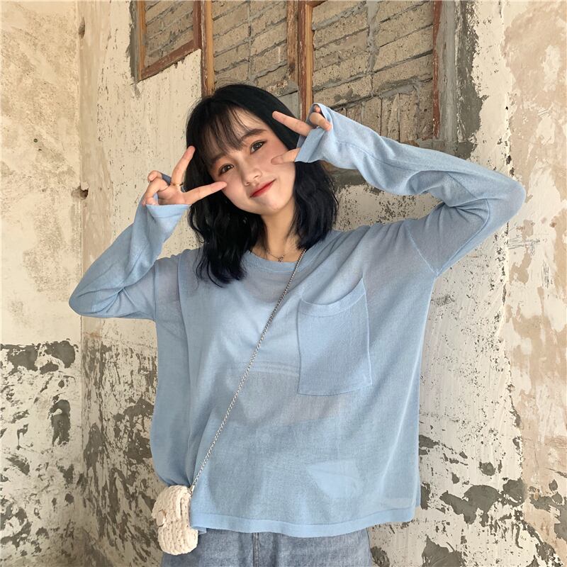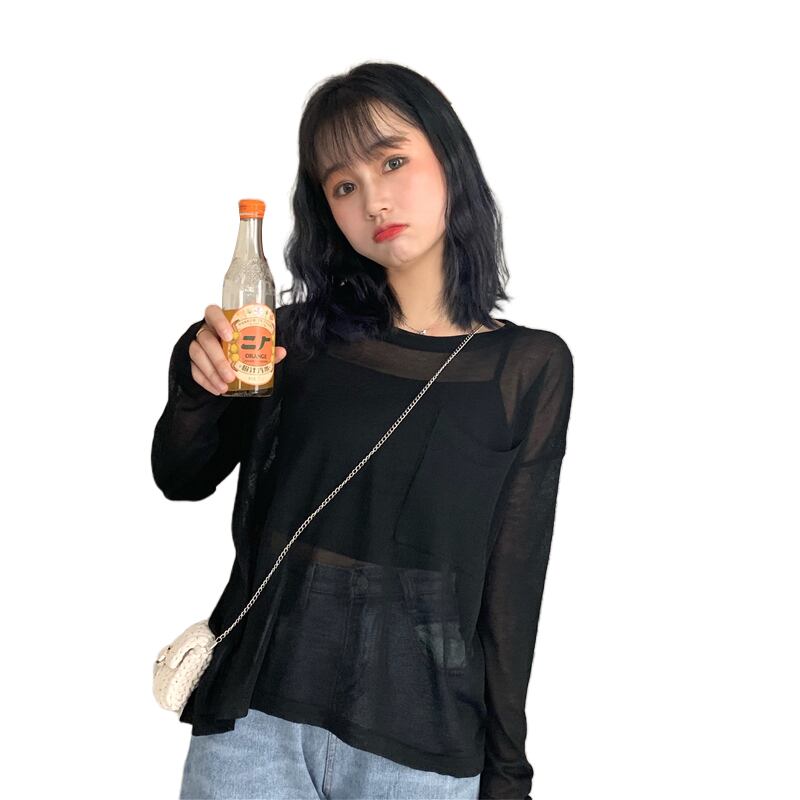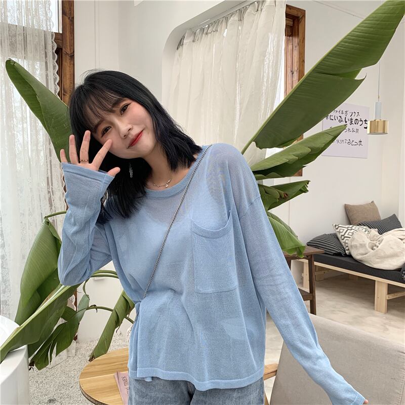 Tシャツレディース2020春夏新作アイスシルクルーズレイジーウィンドシンプルポケットワイルド長袖日焼け止めブラウストップス 1号婦人98902727520
