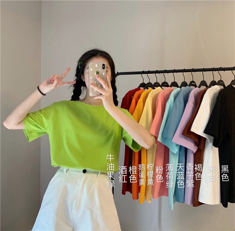 ベーシック半袖2020新作レディースサマータロイモパープルキャンディー無地Tシャツオレンジホワイトトップ 1号婦人63886685573