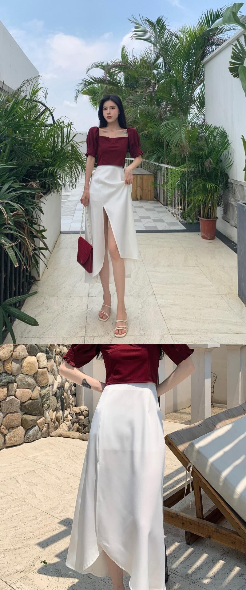 丁寧なマシンスリットスカートレディース2020夏新バージョンのハイウエストスカートインネットレッドミドル丈Aラインスカート 1号婦人14247292906