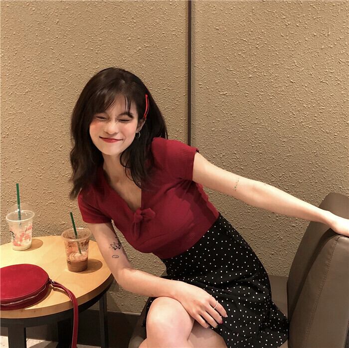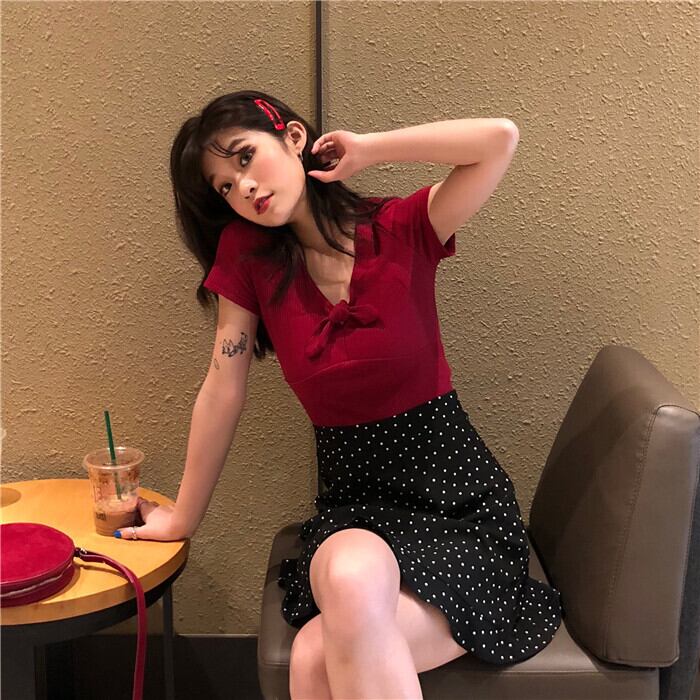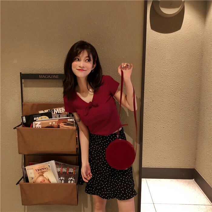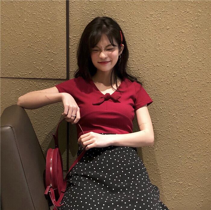 2020年春バージョン新作スリムスリミングボウタイVネック半袖Tシャツボトミングシャツトップス 1号婦人59781019105