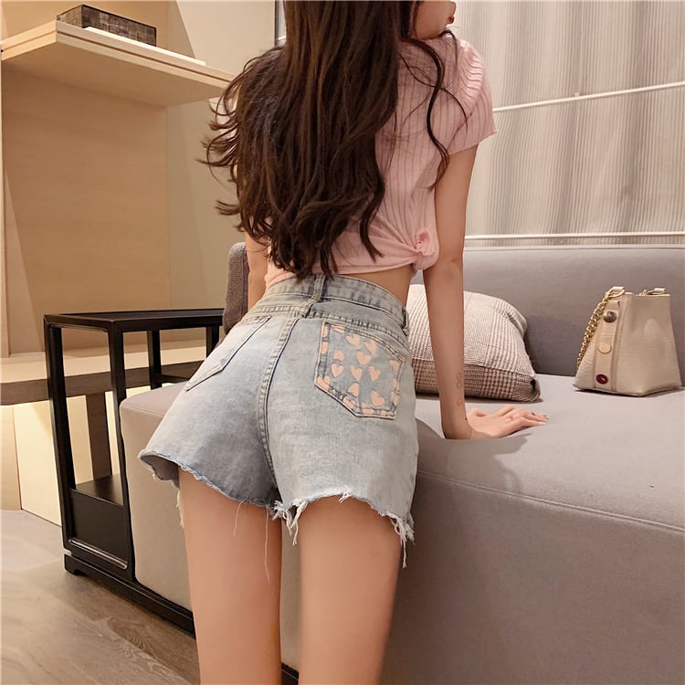 2020年春夏新作香港フレーバーシックラブハイウエストイレギュラーローエッジワイルドワイドレッグデニムショーツレディーストレンド 1号婦人79415066708