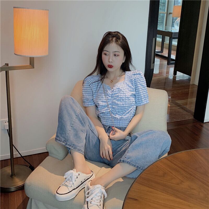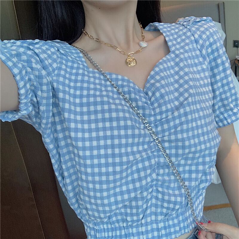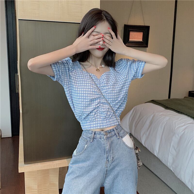ネットレッドウエスタンレディースシャツ2020サマースリムシンレトロチェック柄半袖シャツトップ 1号婦人44083181265